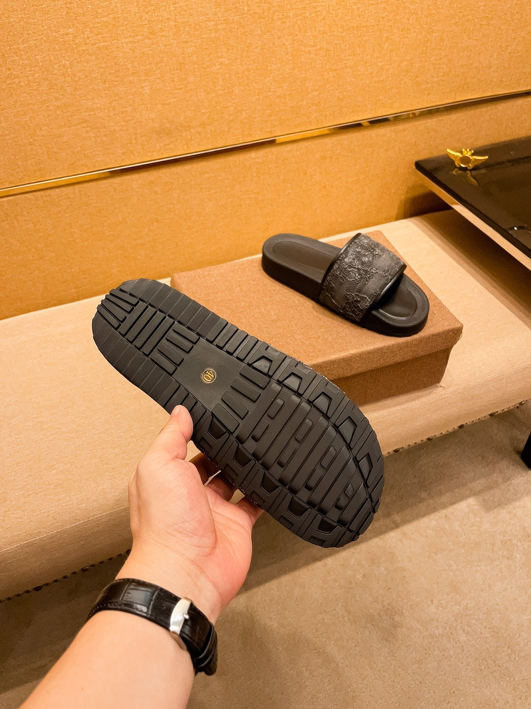 GG Men's Slide Black Calfskin 709745