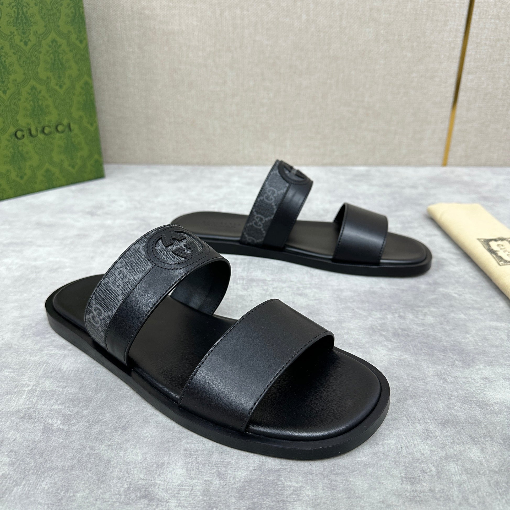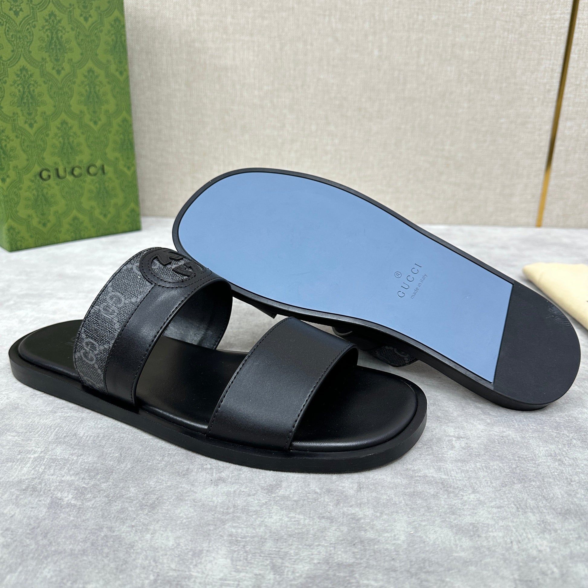 GG Men's Slide Black Canvas Cowhide 542947