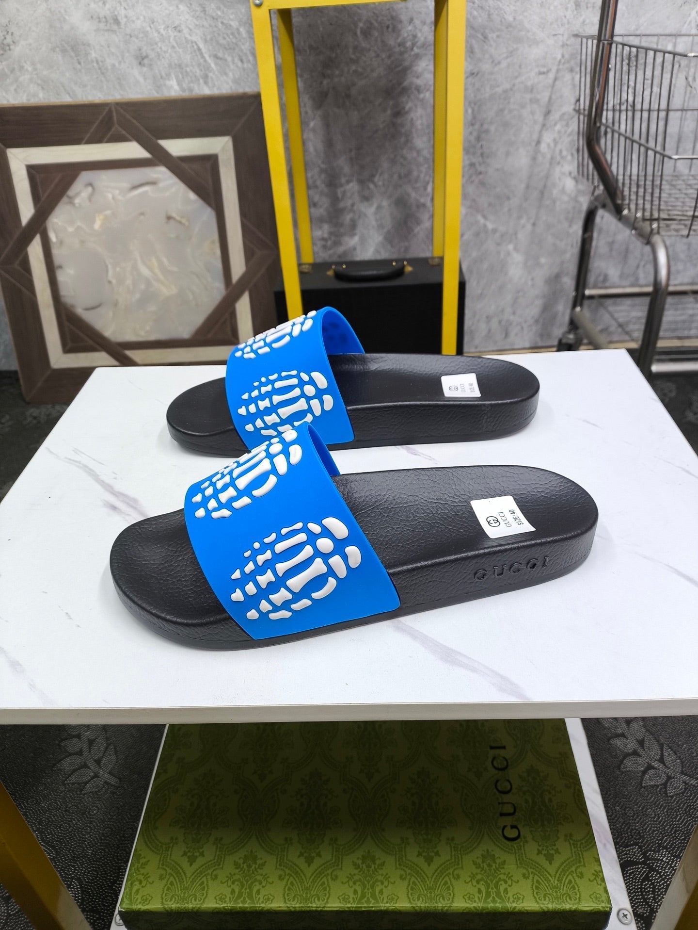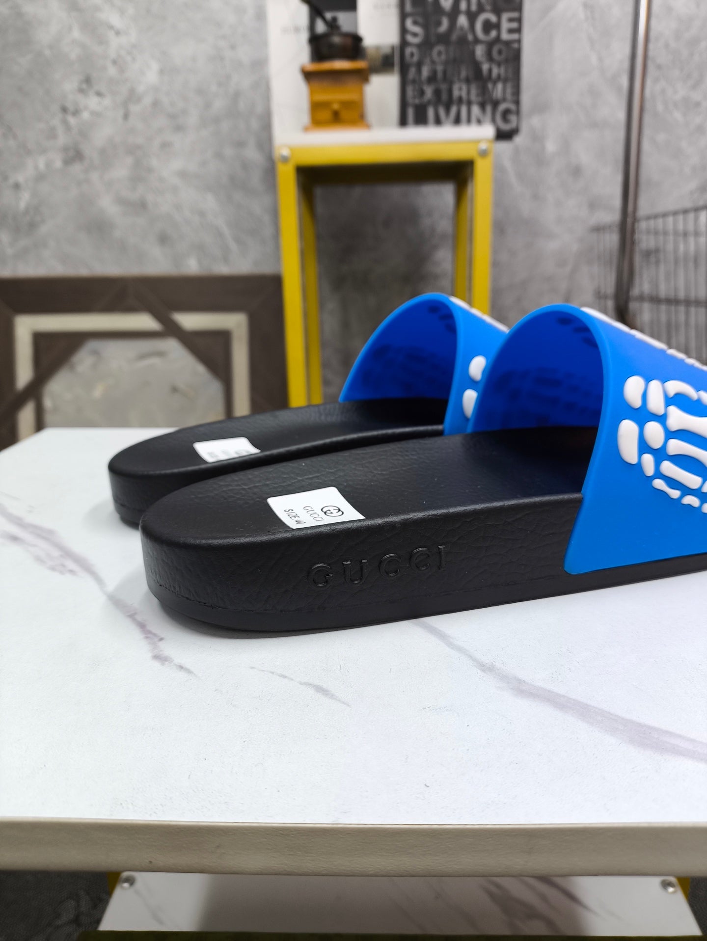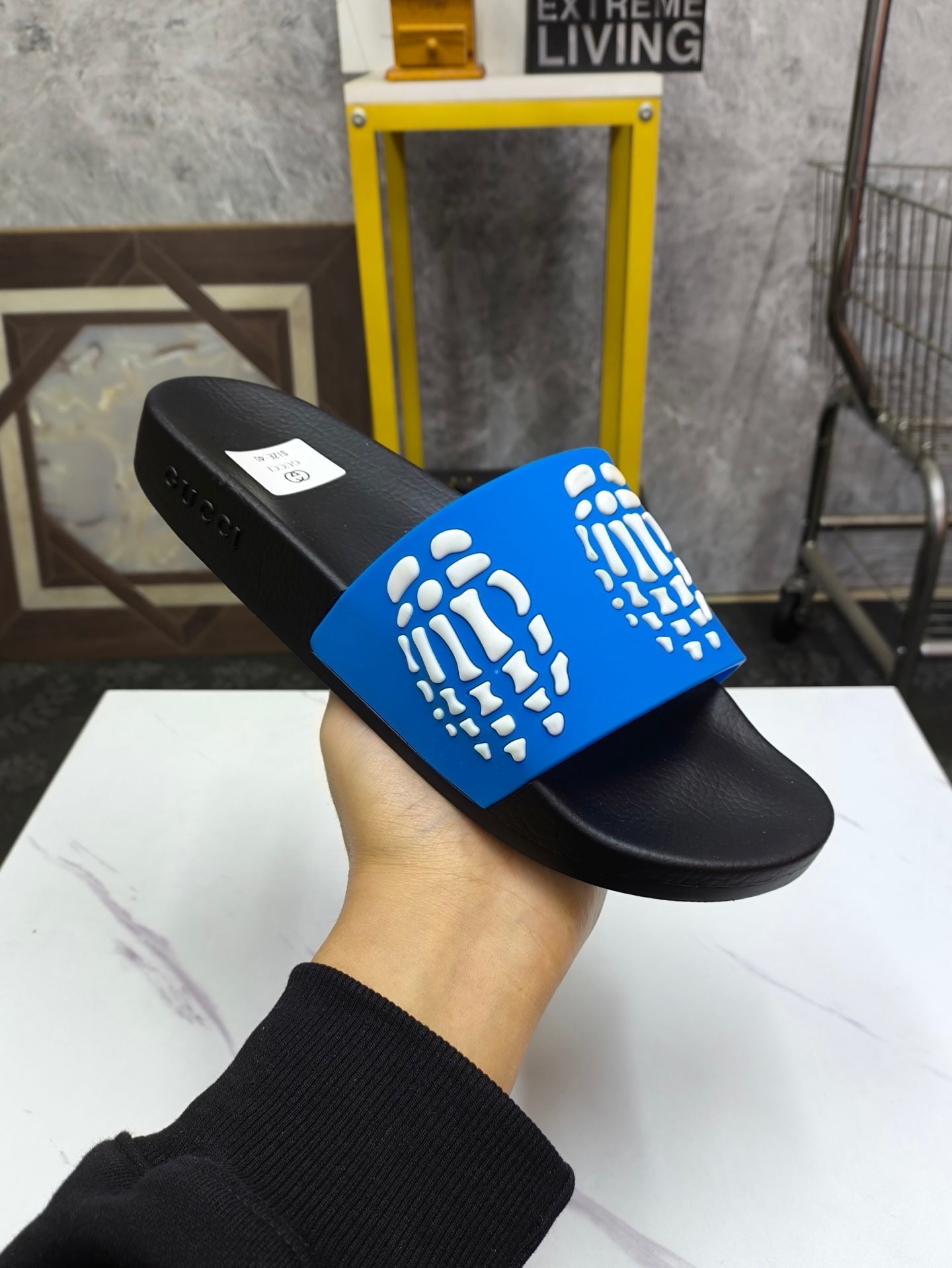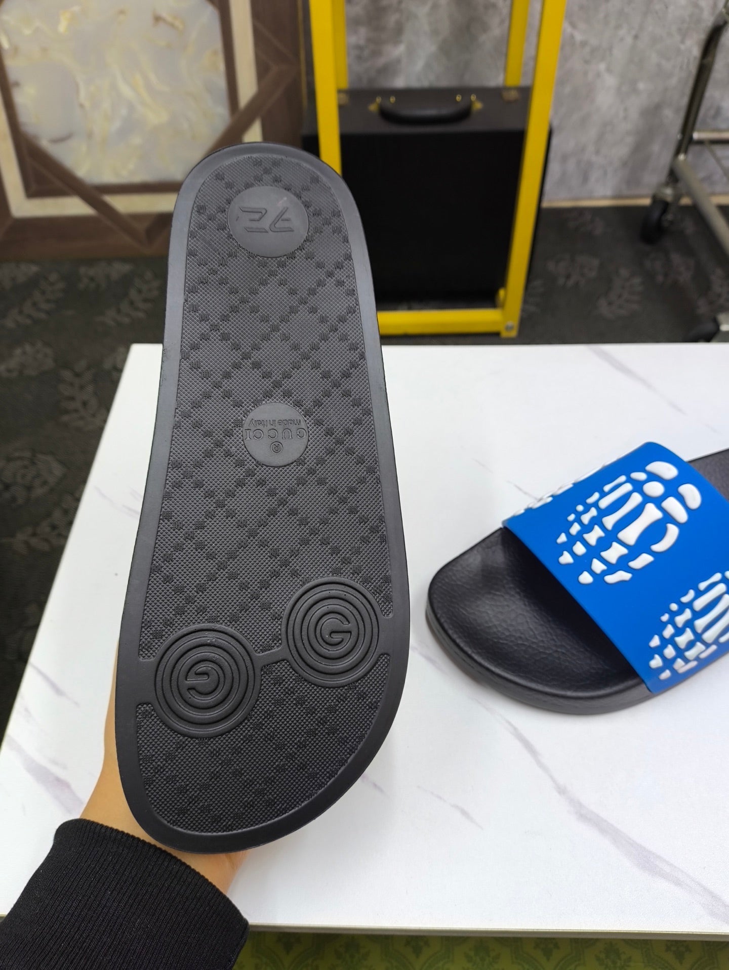 GG Men's Slide Blue Sheepskin Rubber 540049