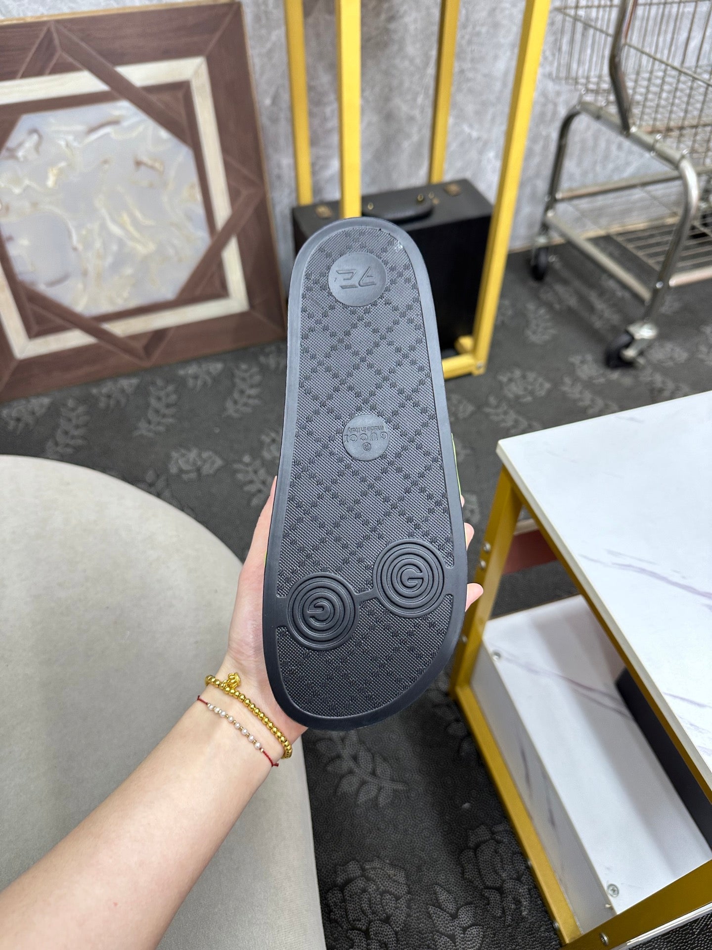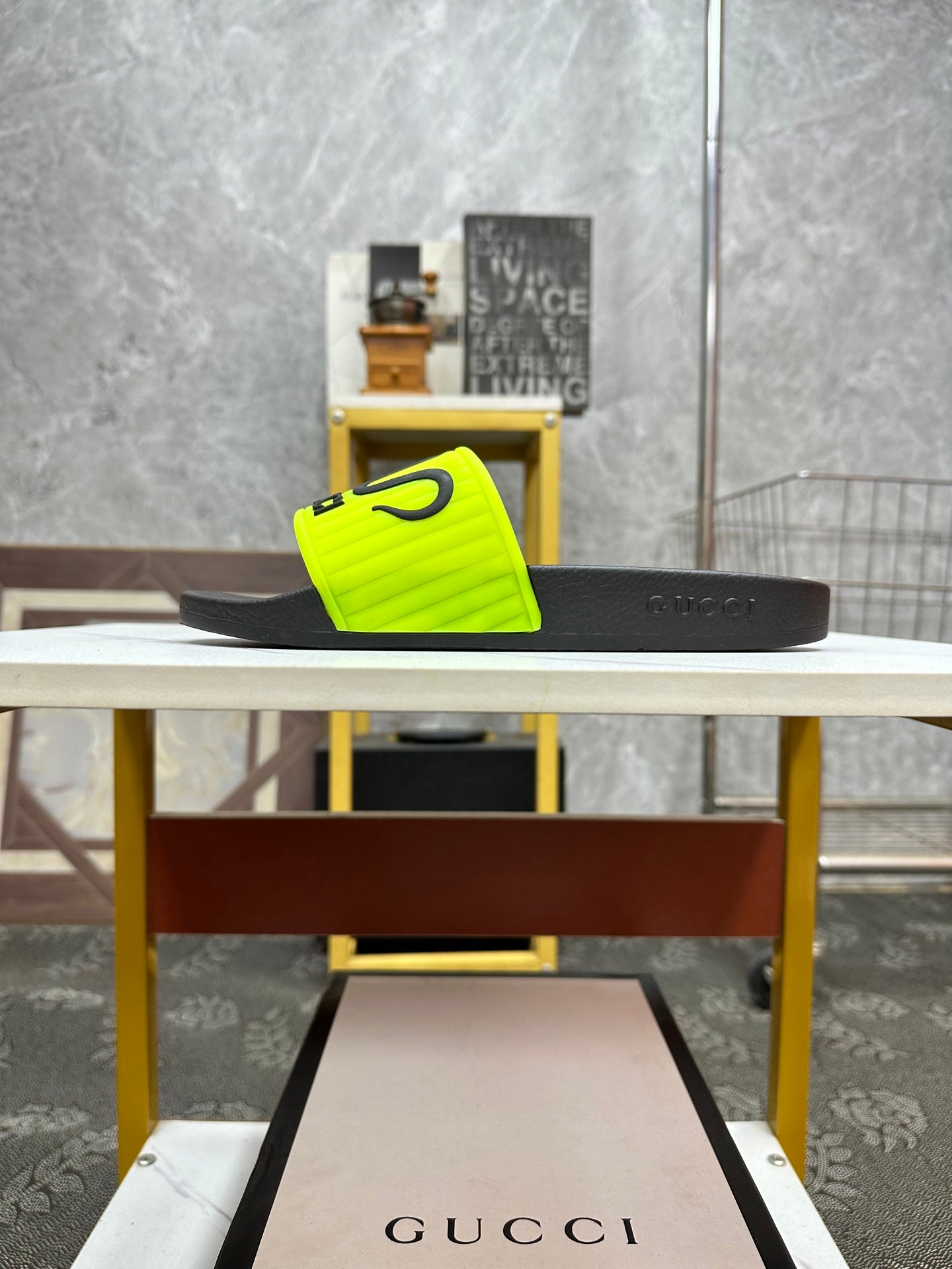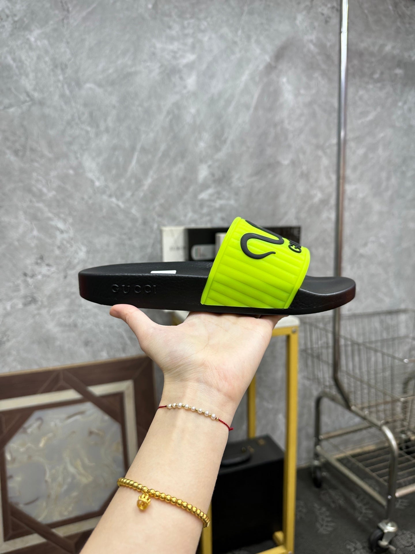 GG Men's Slide Green Sheepskin Rubber 540095