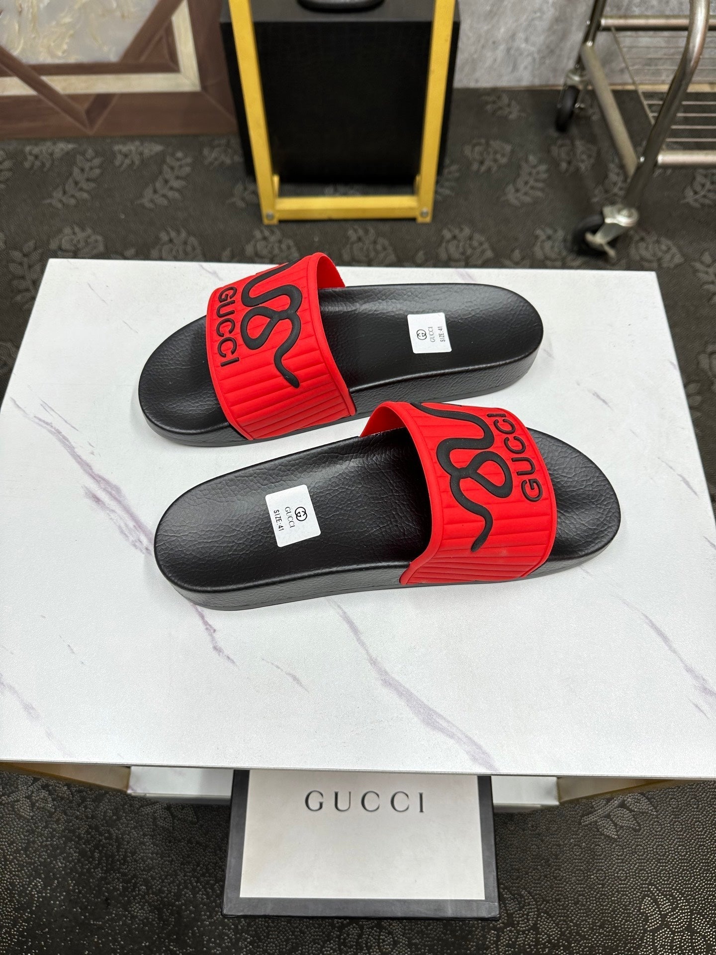 GG Men's Slide Red Sheepskin Rubber 540094