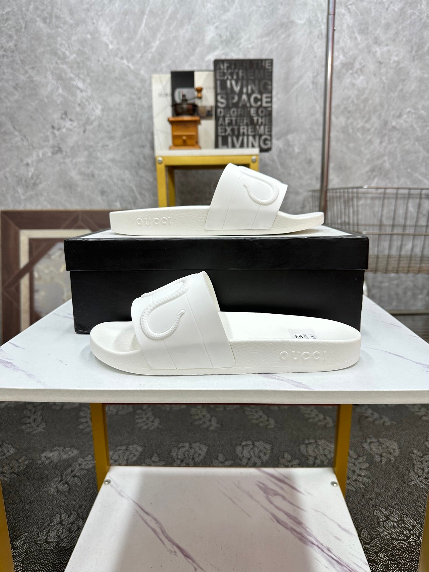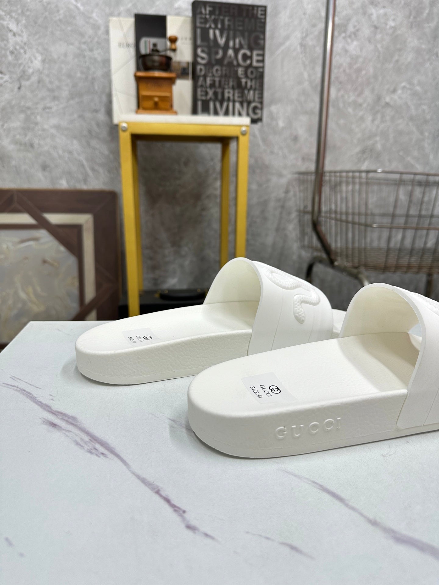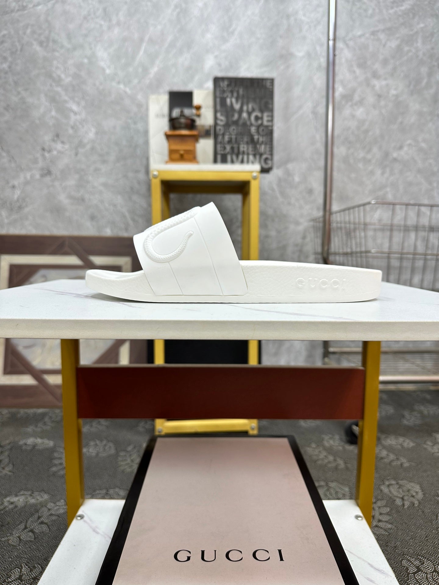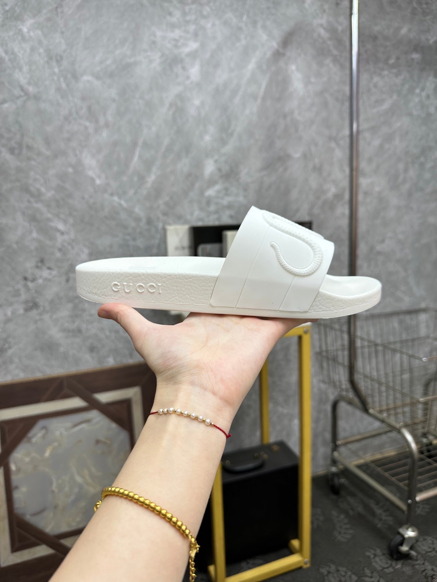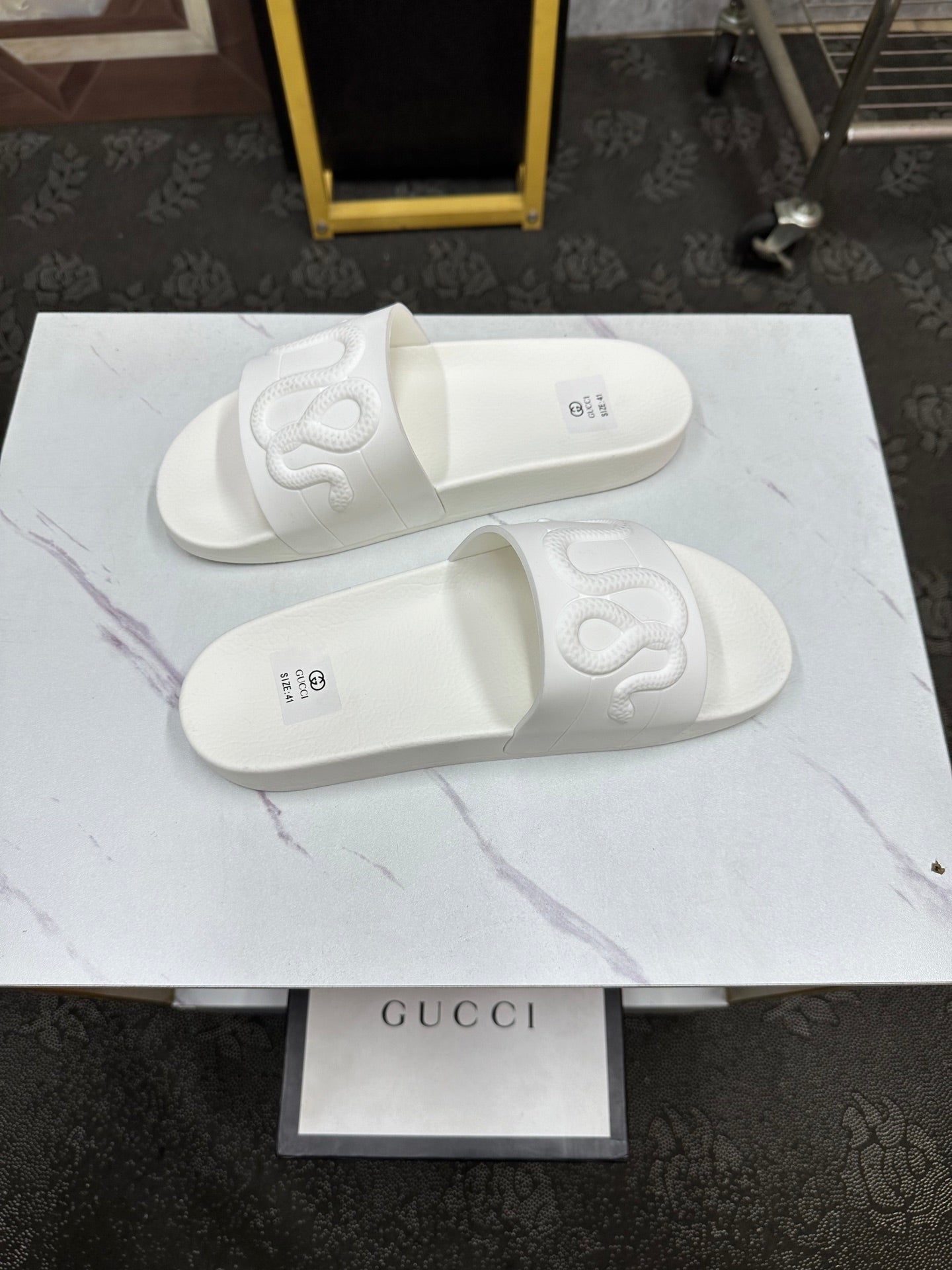 GG Men's Snake Embossed Slide White Rubber 540111