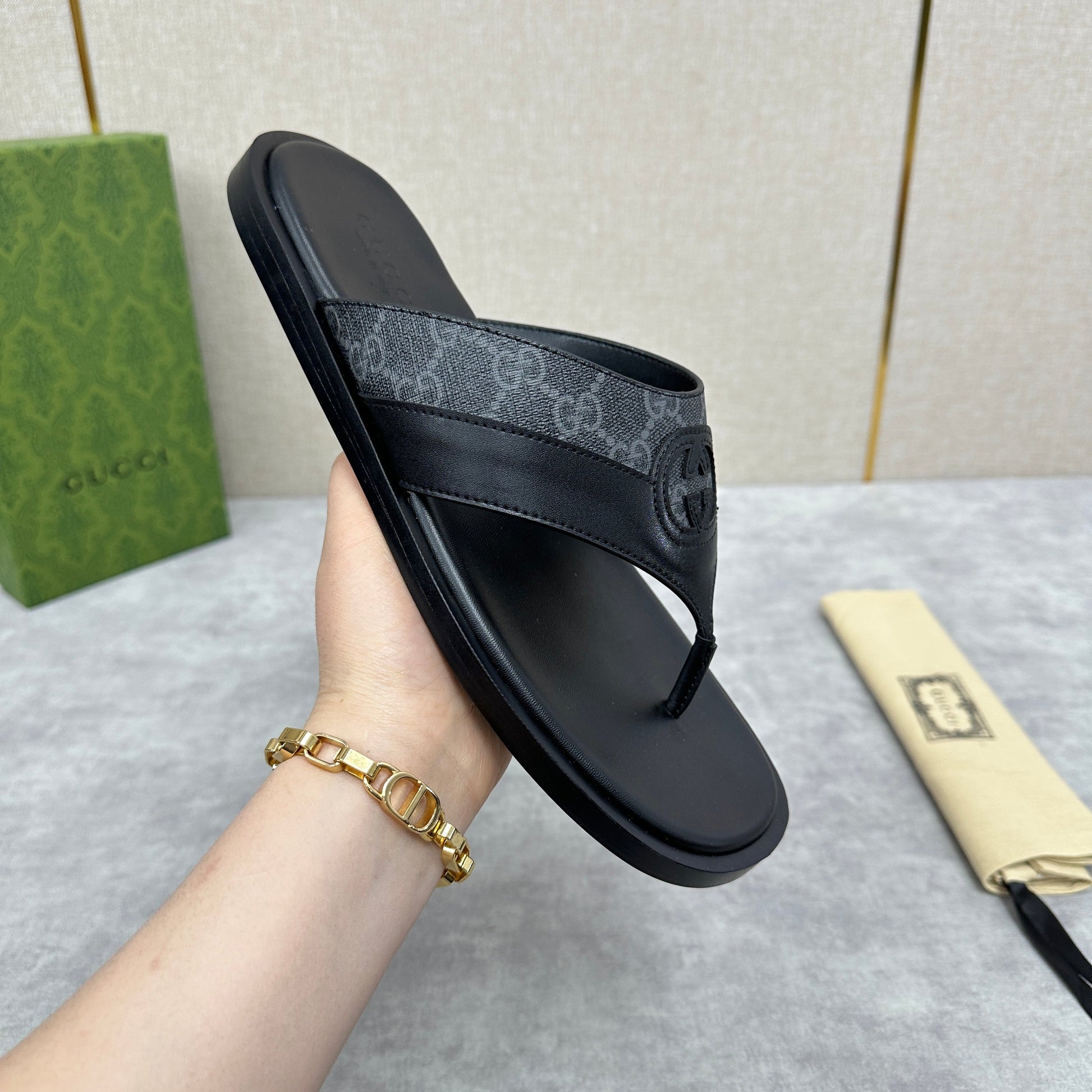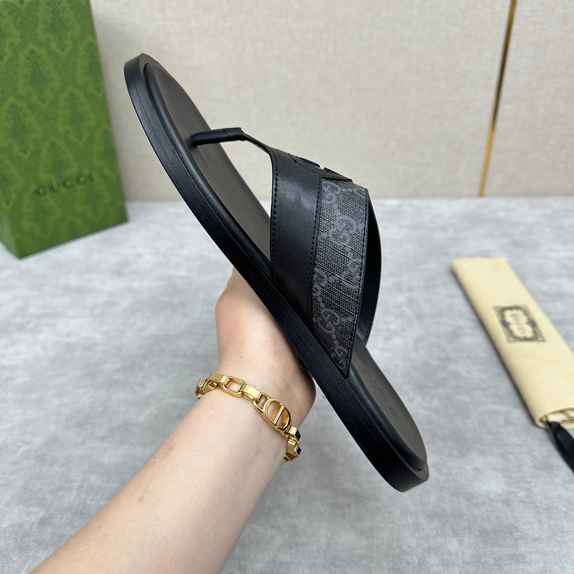 GG Men's Thong Sandals Black Canvas Cowhide 542951