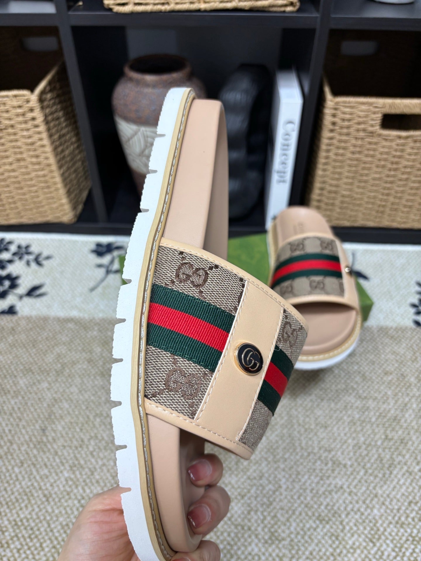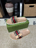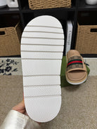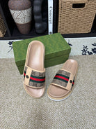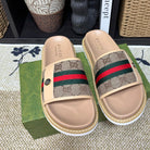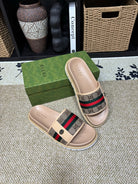 GG Men's Web Slide Beige Canvas Cowhide 595537