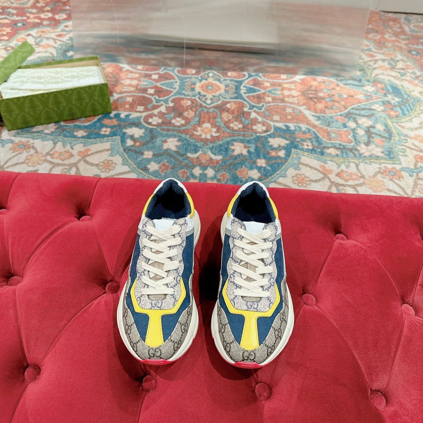 GG RHYTON TRAINER LIGHT BROWN AND LEMON CALFSKIN