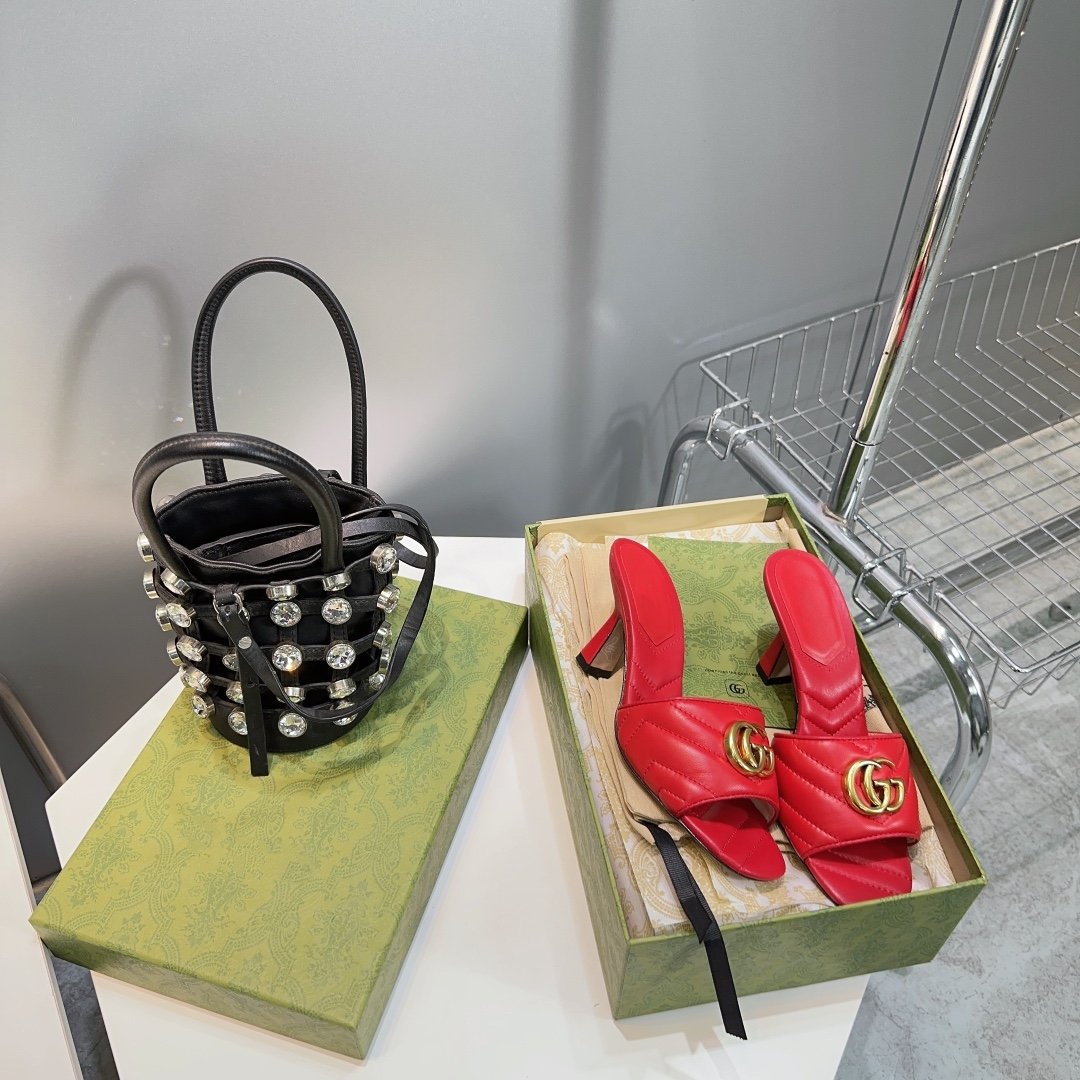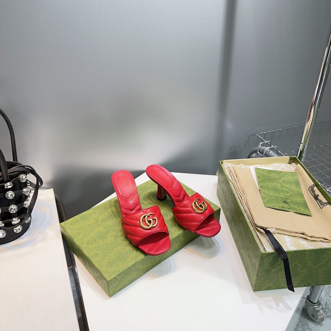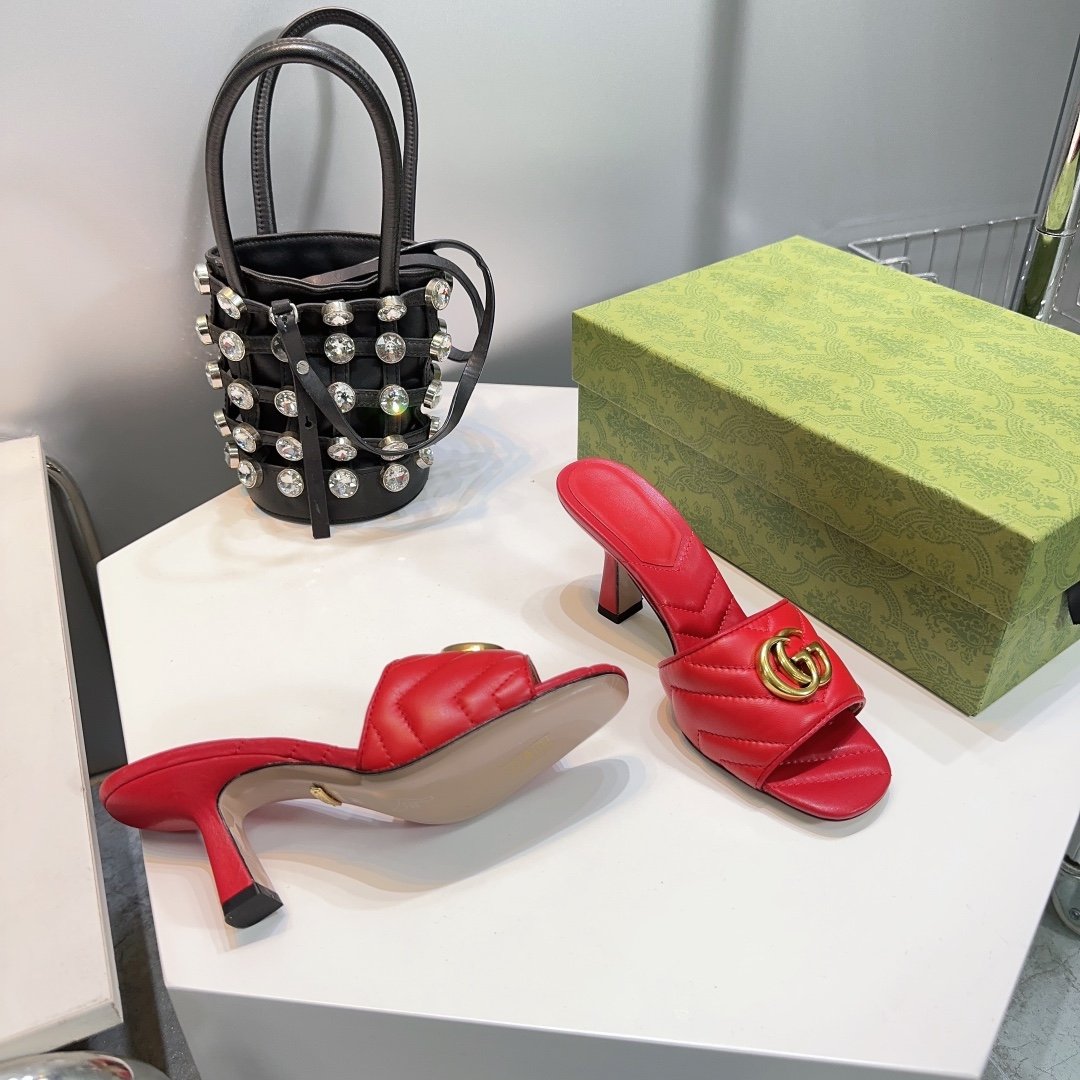 • High-end new embroidered classic G buckle high-heeled sandals.
