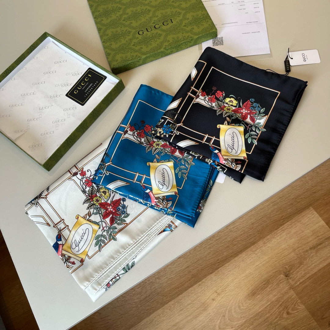 GG Signature Floral Scarf 90CM Blue Muticolor Twill Mulberry Silk 280659