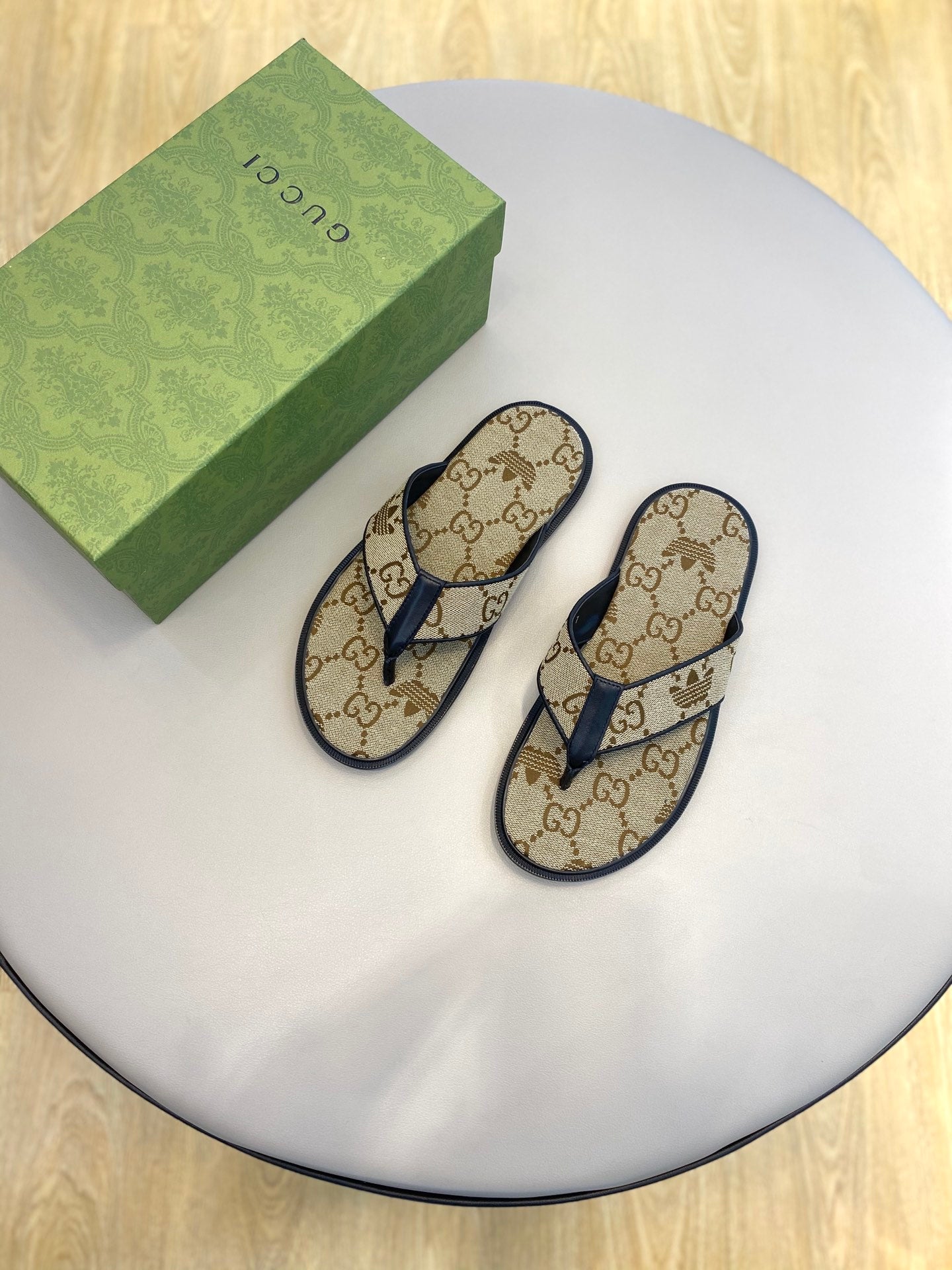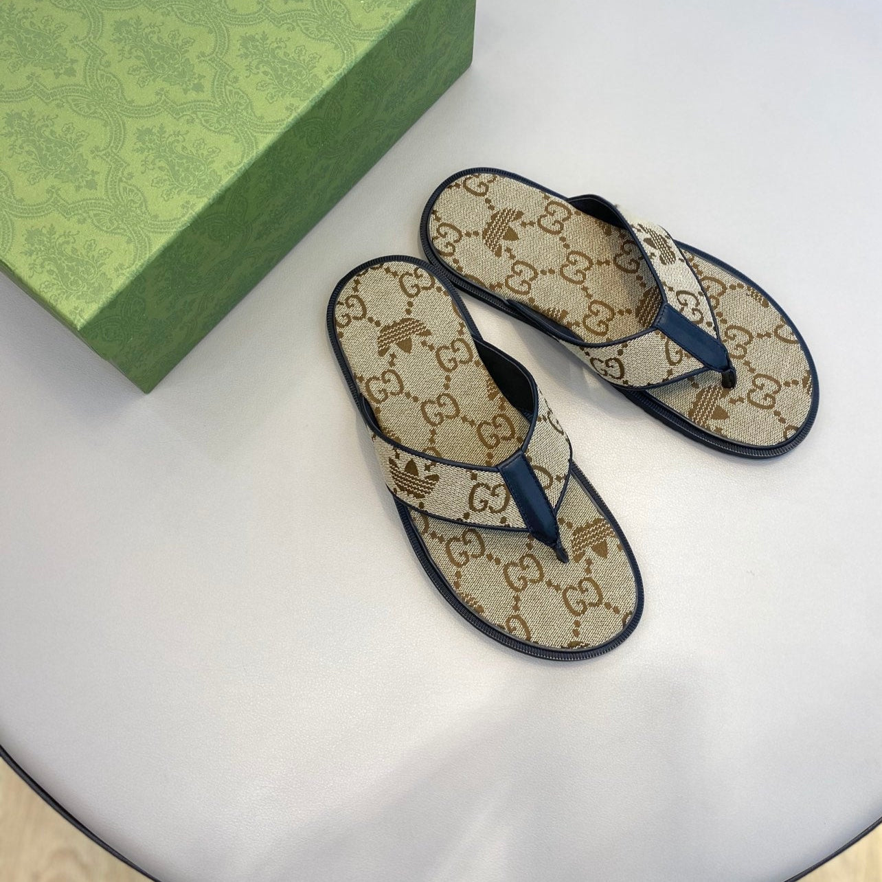 GG x Adidas Men's Thong Sandals Brown Canvas 558907