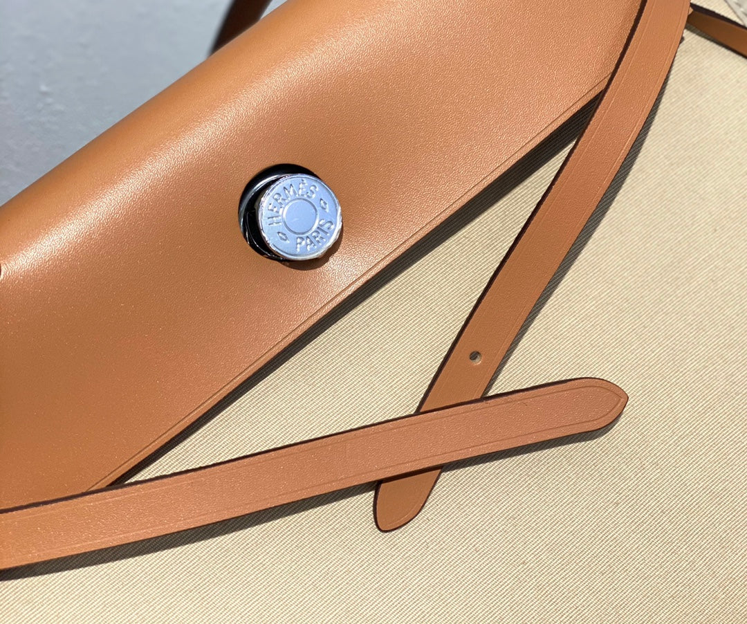Herbag 31 Toile Light Beige Canvas Gold Cowhide Leather
