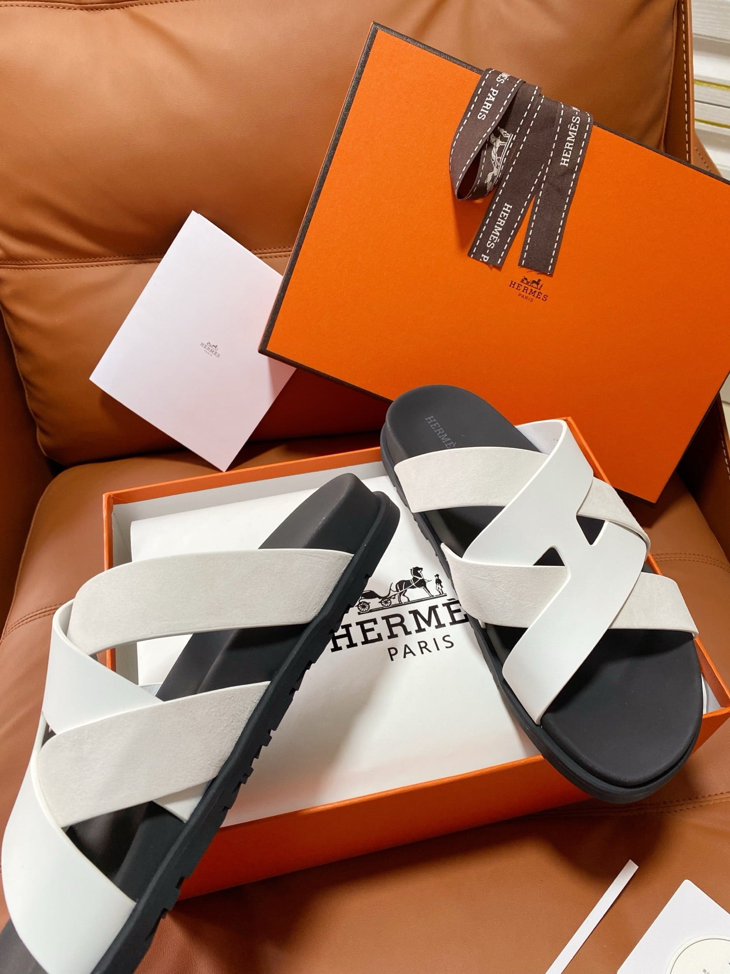 HM 2026 Cross Sandals Black White Suede Calfskin 667294