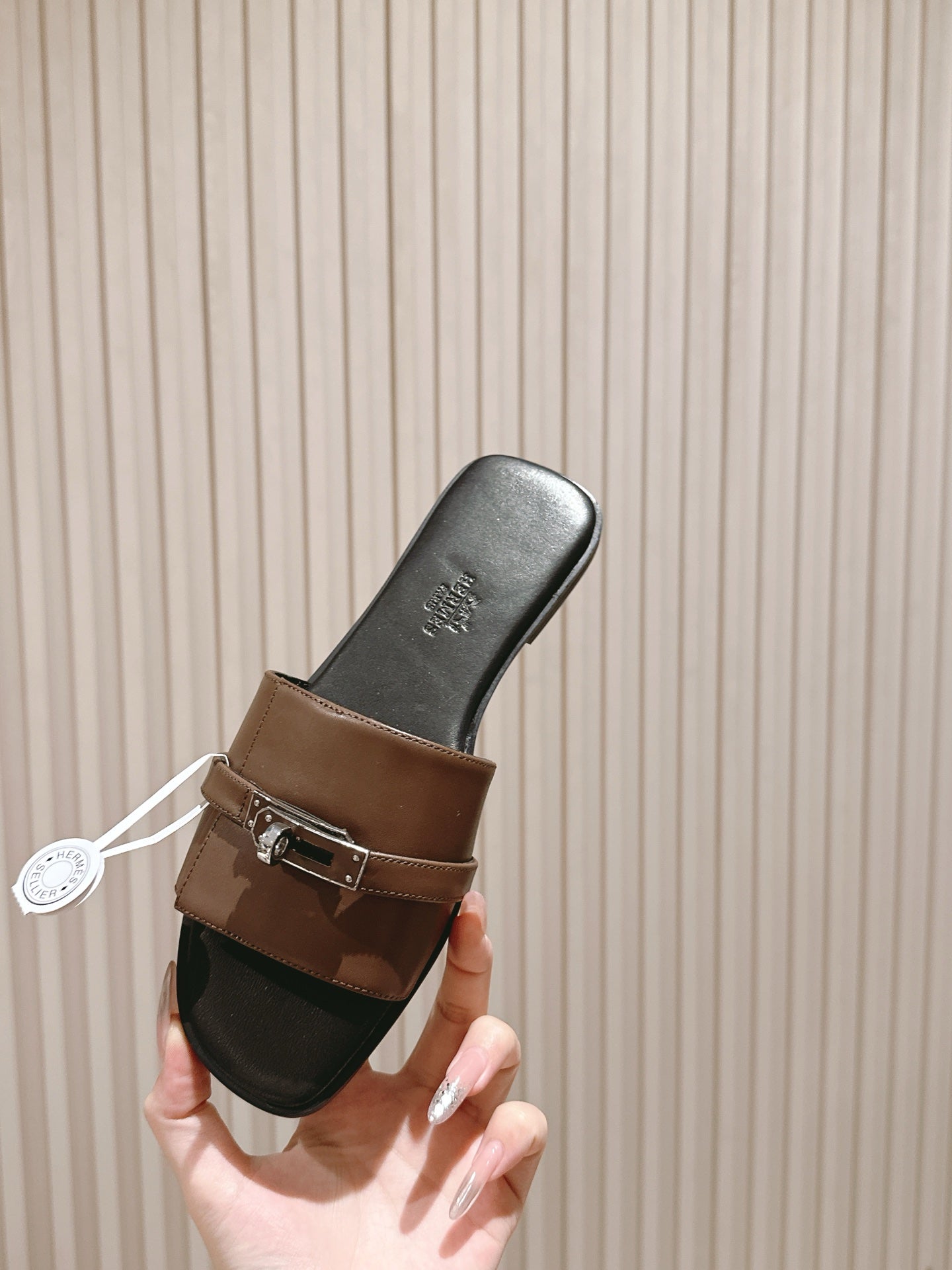HM 2026 Flat Slippers Black Brown Calfskin 655861