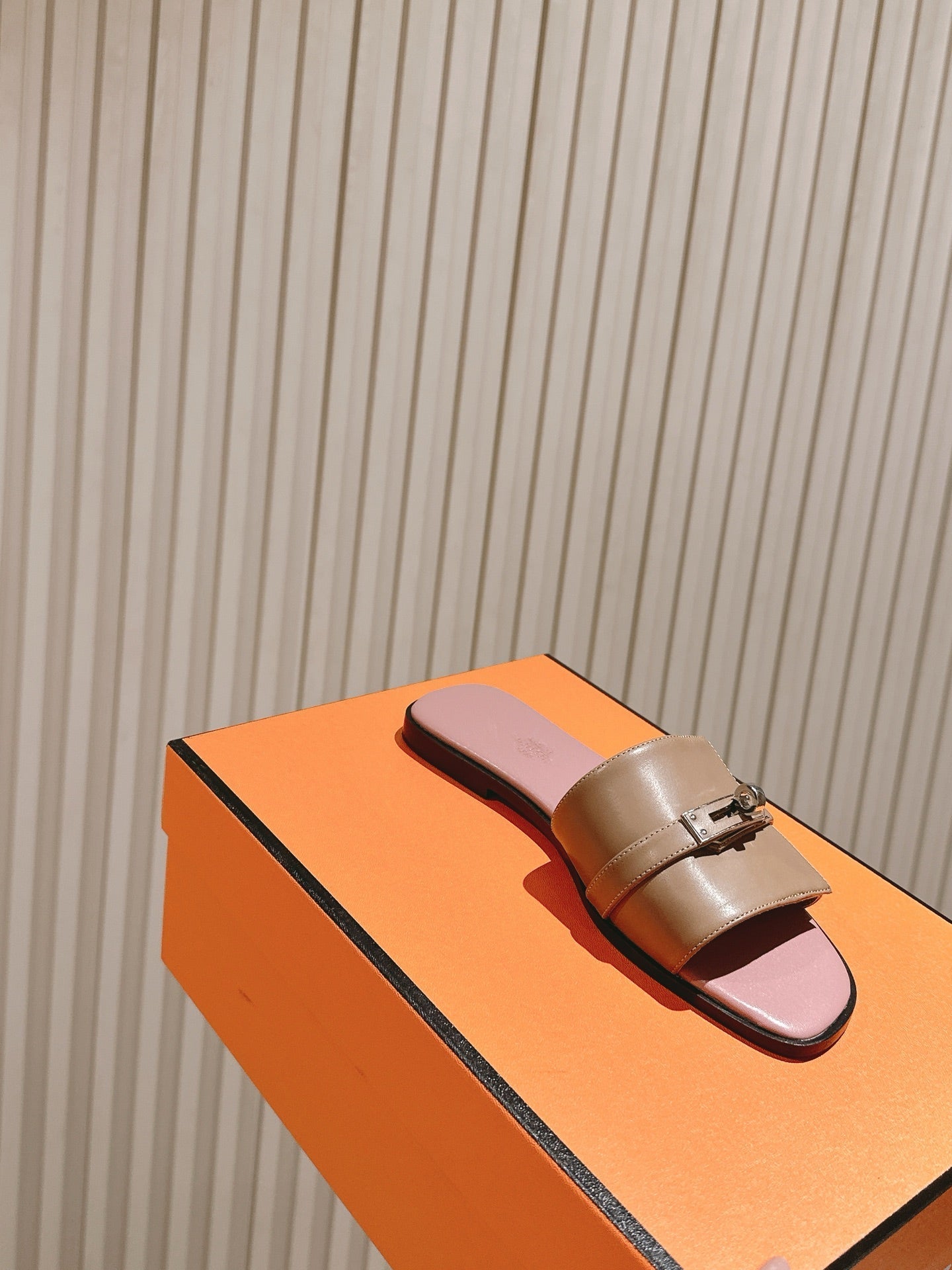 HM 2026 Flat Slippers Taupe Pink Calfskin 655859