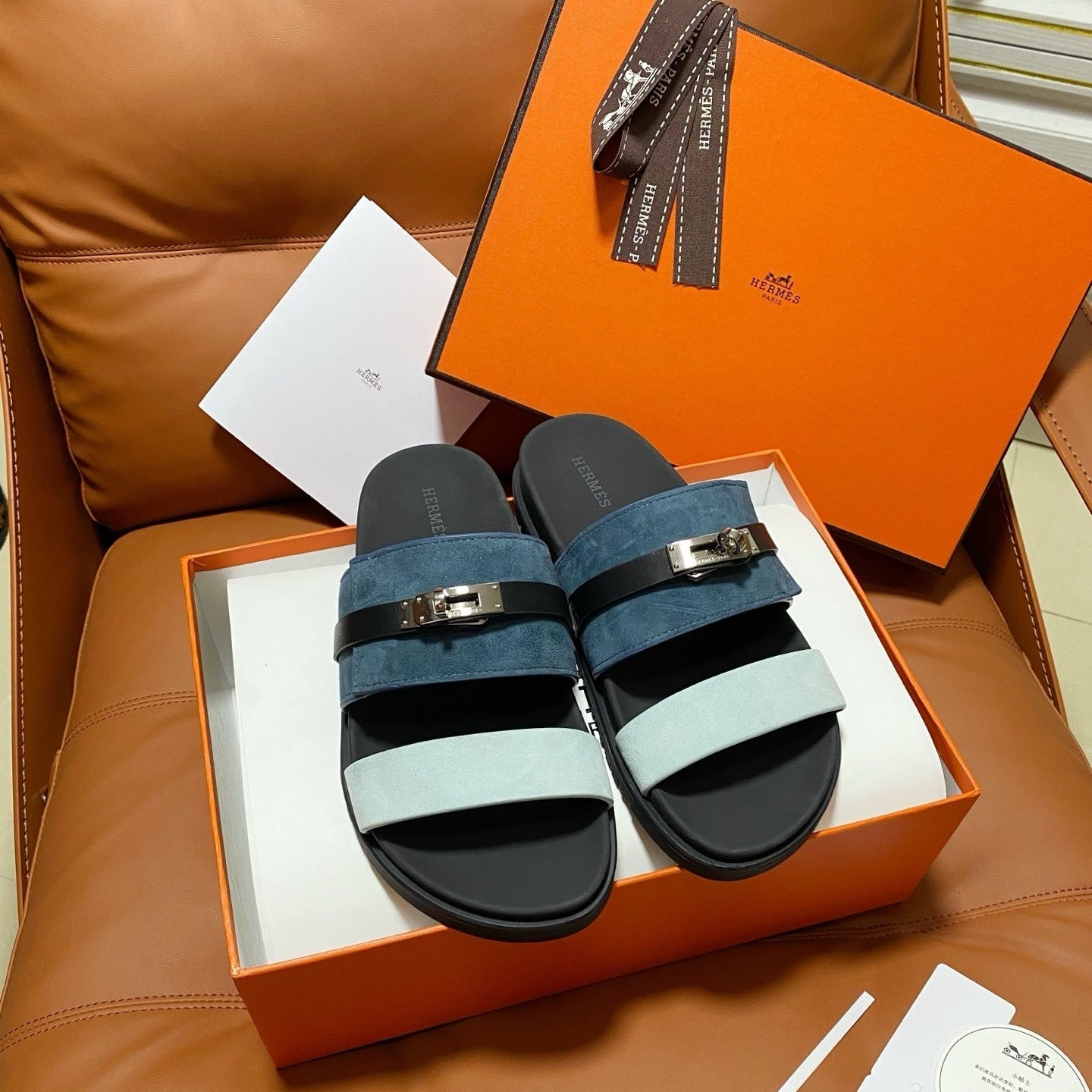 HM 2026 Velcro Sandals Black Blue Suede Cowhide 663787