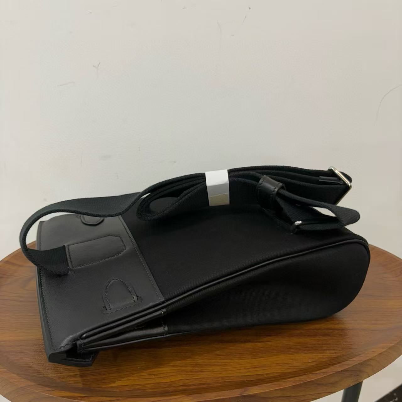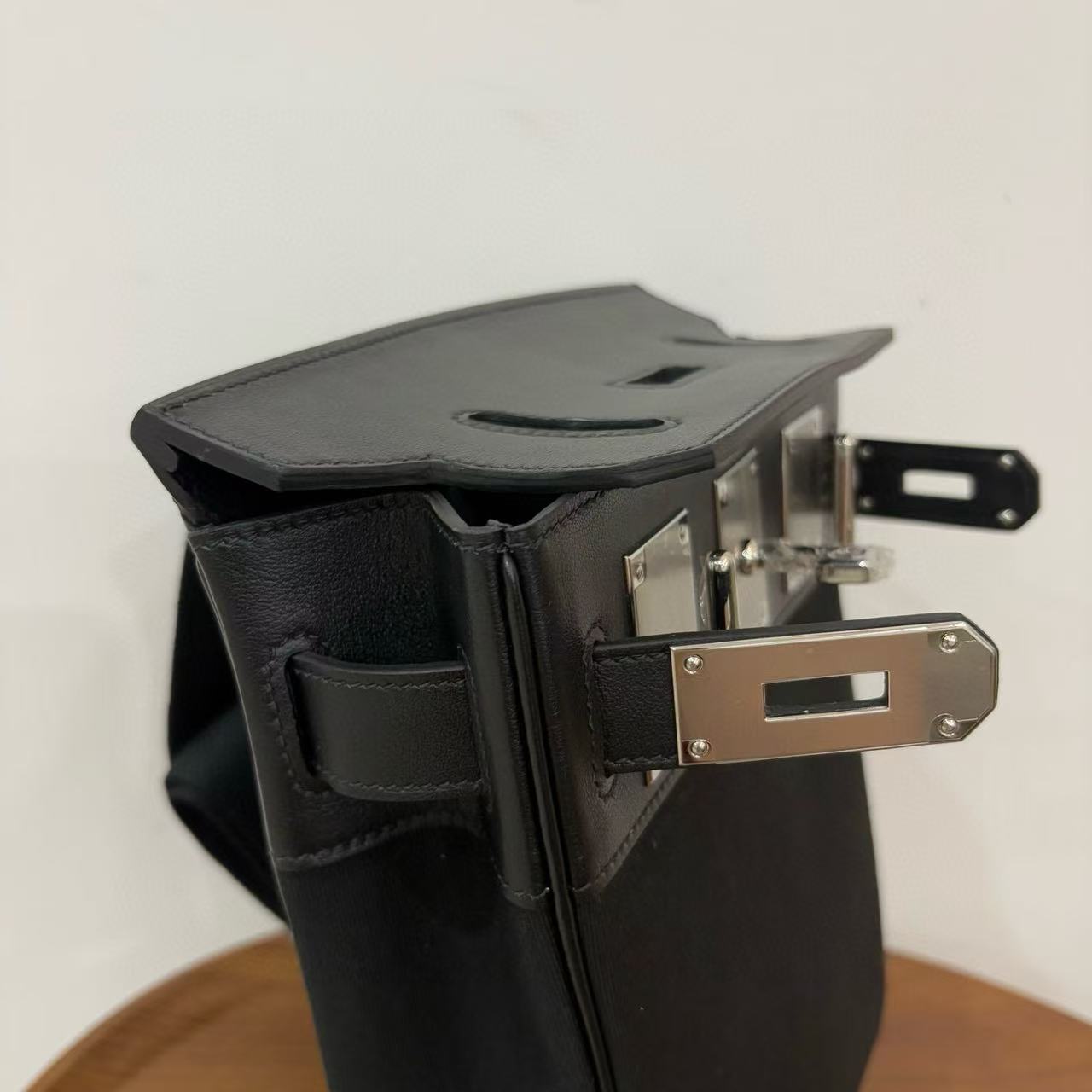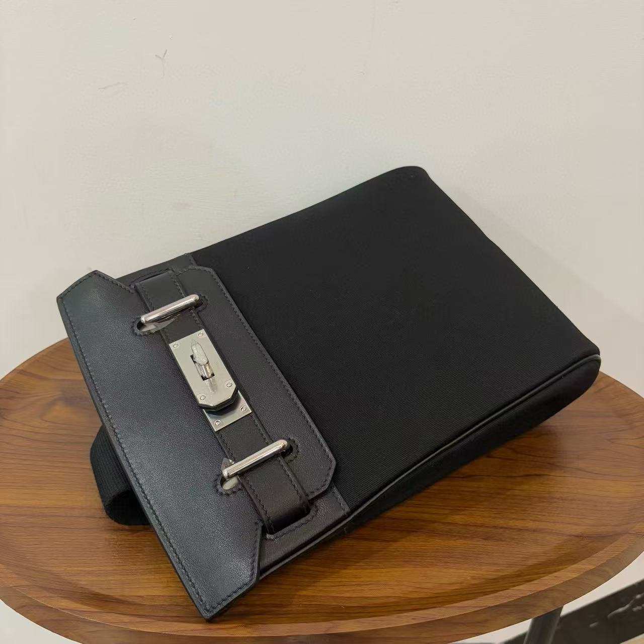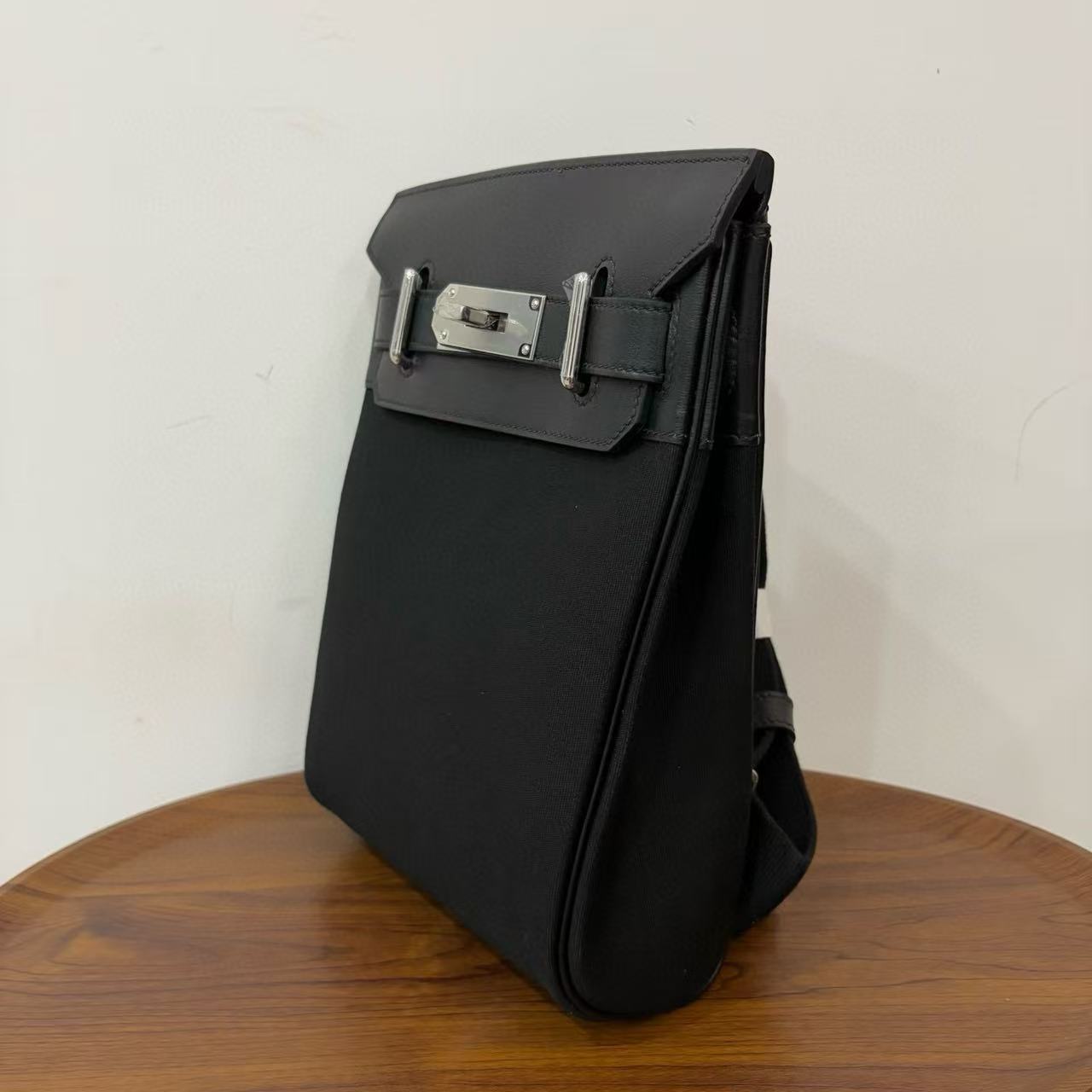 HM 25 Hac a Dos PM Bag Black Silver Woolycot Canvas And Swift Calfskin