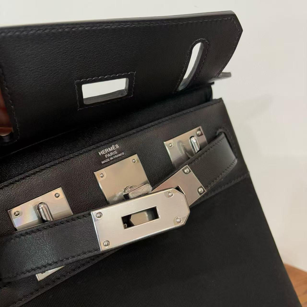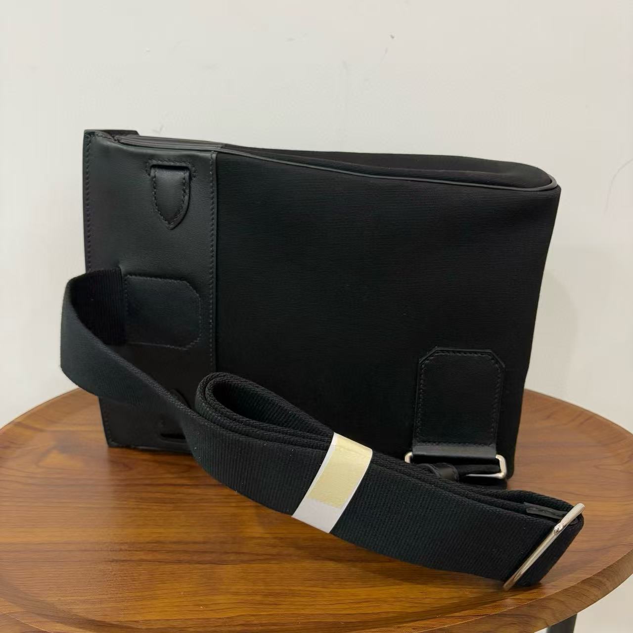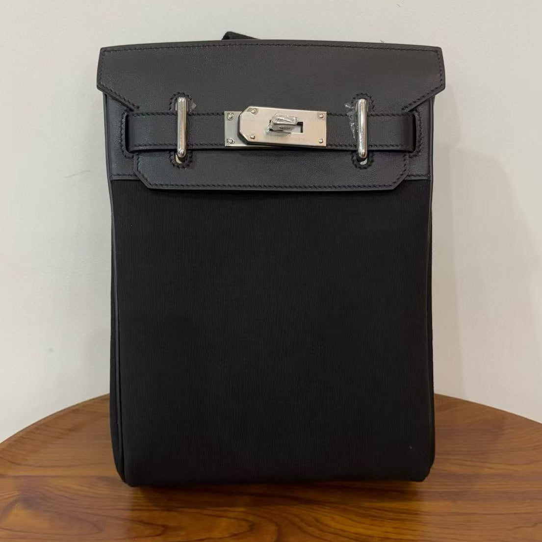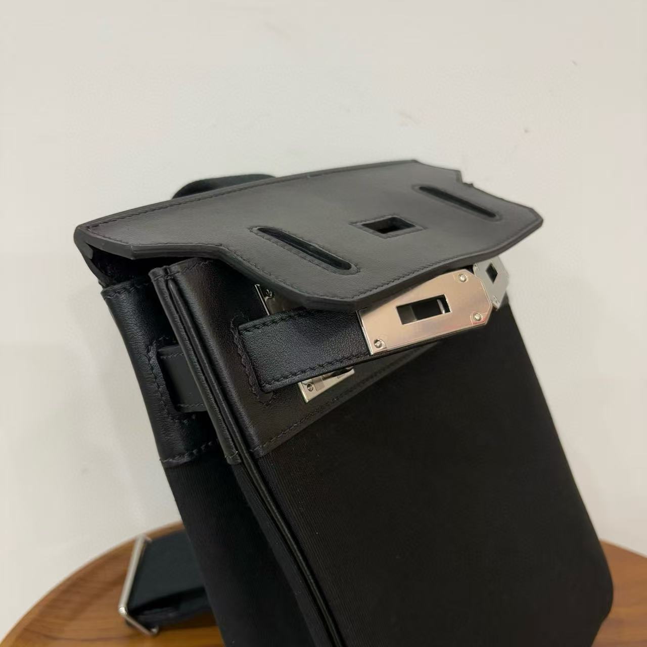 HM 25 Hac a Dos PM Bag Black Silver Woolycot Canvas And Swift Calfskin