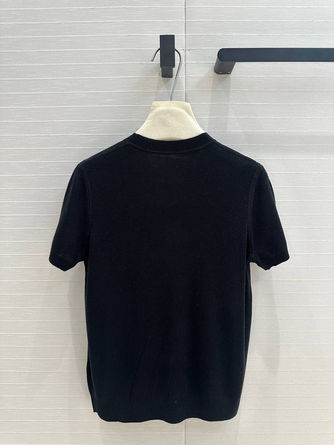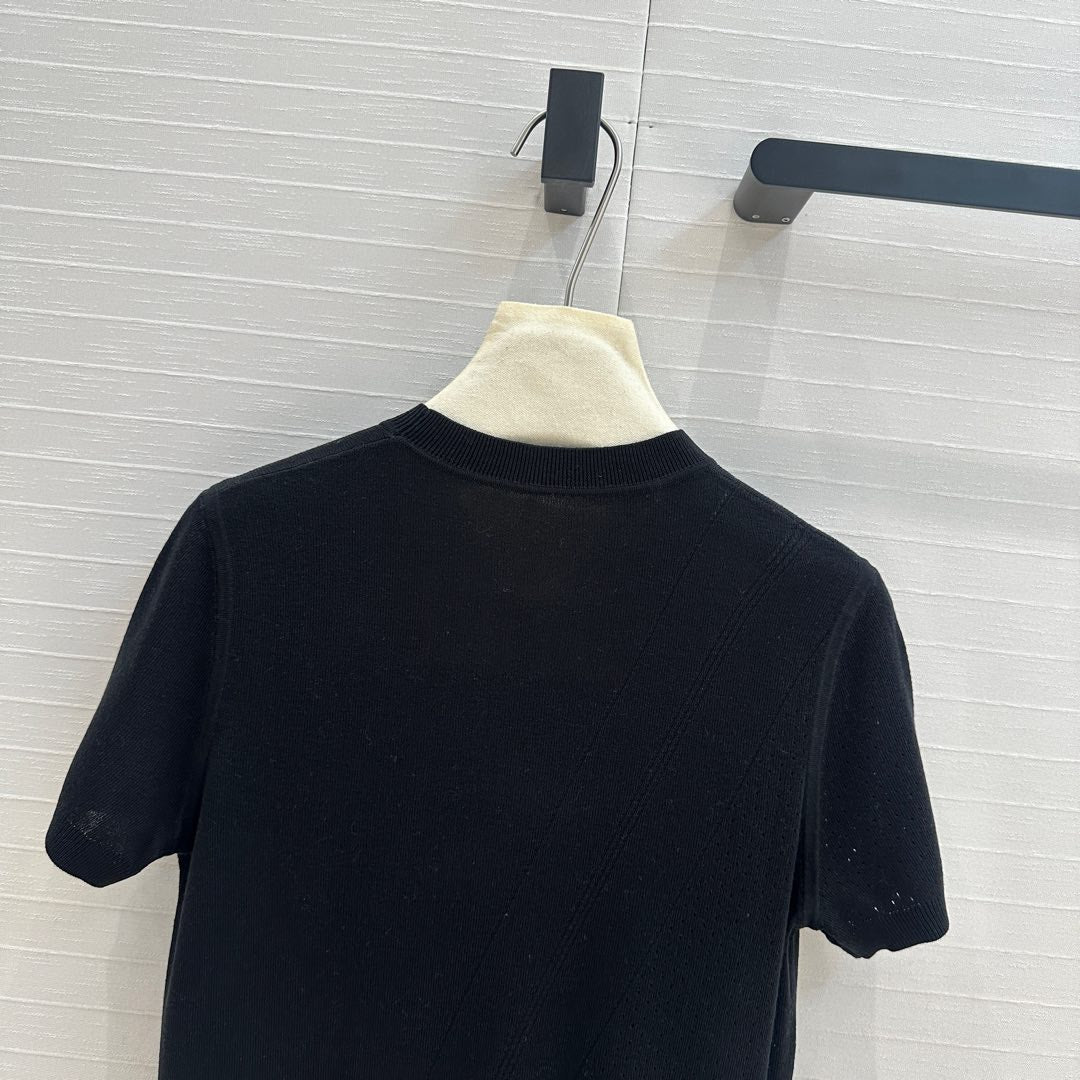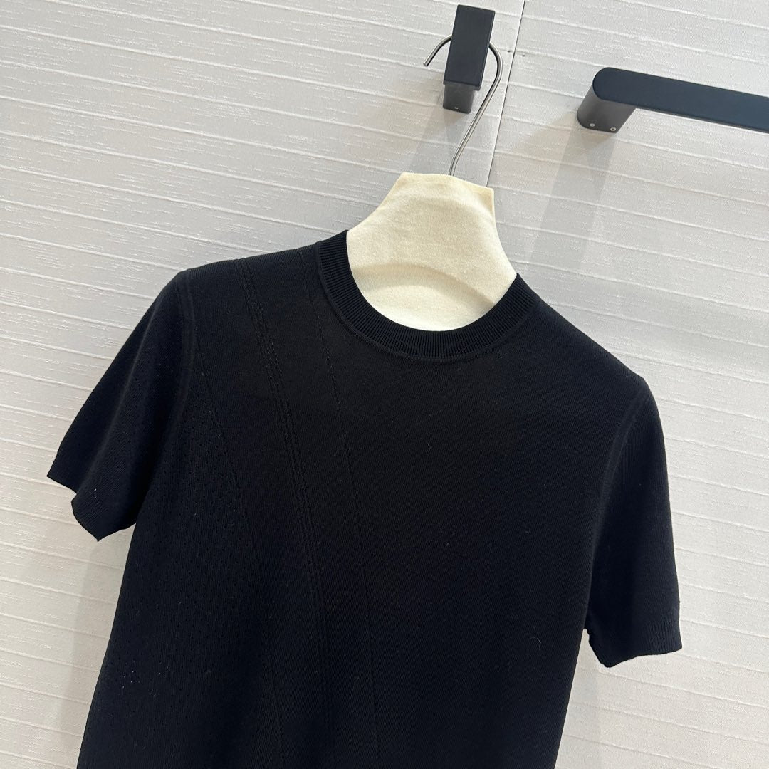 Hm 25 Hollow Knit Short-Sleeve Top Black Tencel Cotton