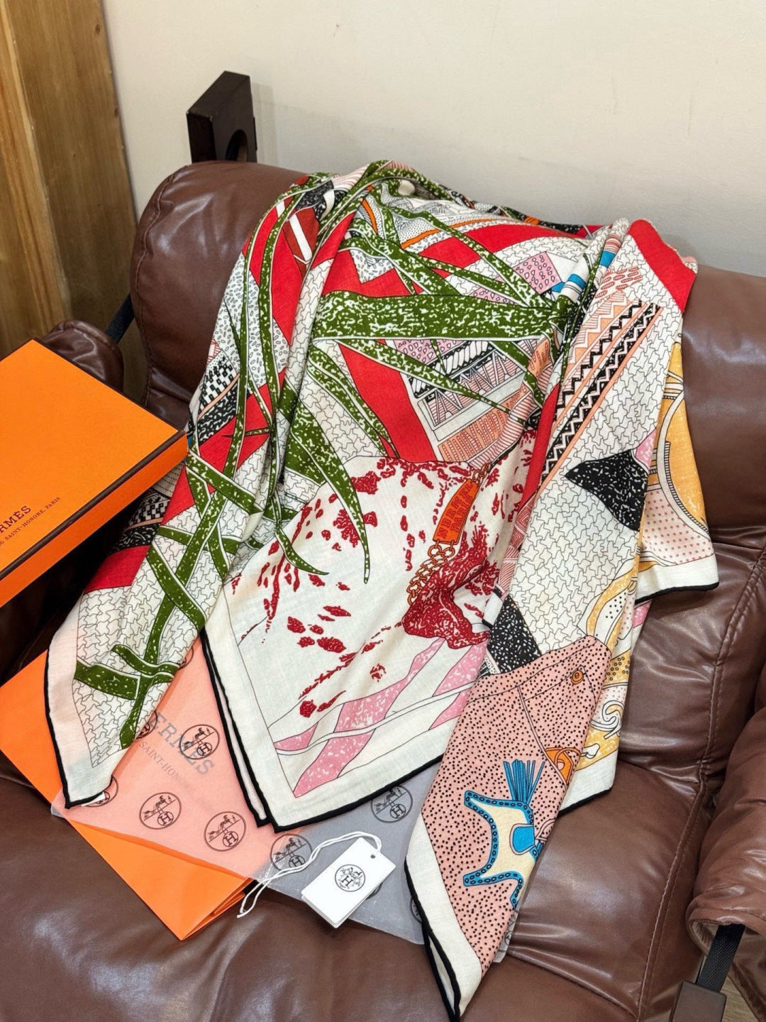 HM 25s Essential Scarf 140cm Pink Colorful Cashmere Silk 967424