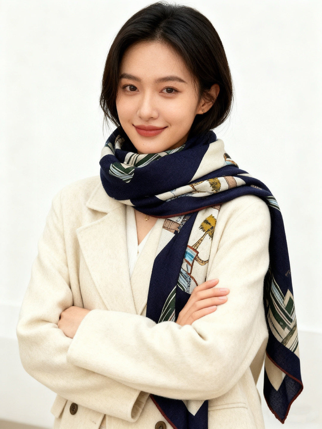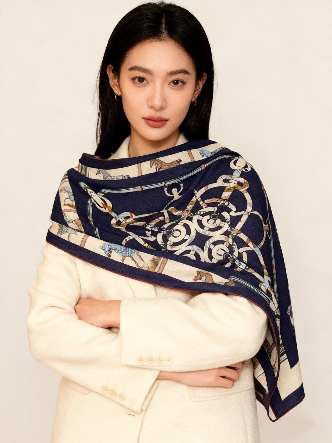 HM 25s Golden Spurs Scarf 140cm Navy Blue Cashmere 976283