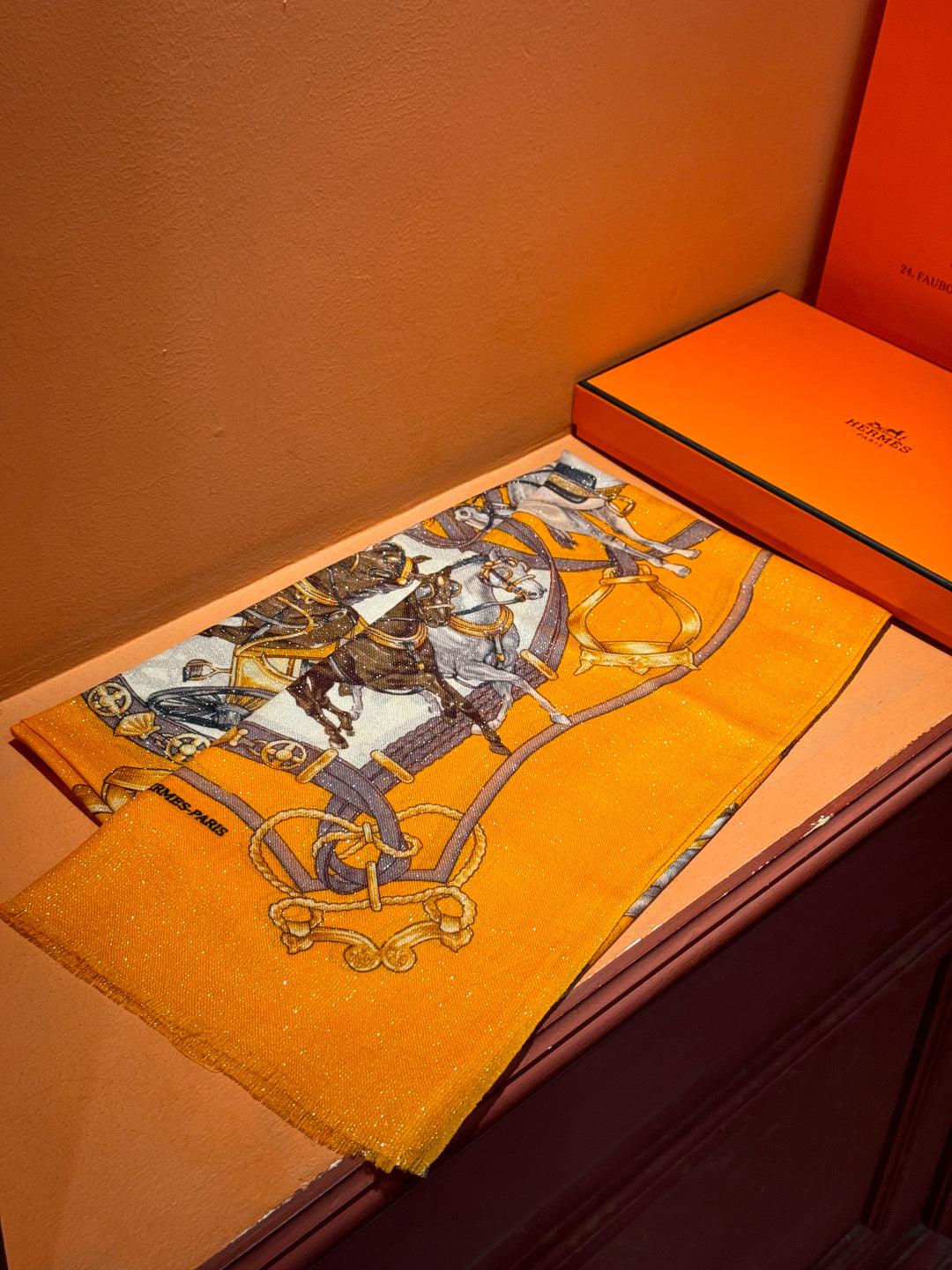 HM 25s Radiant Scarf 200cm Orange Brown Cashmere Silk 962395