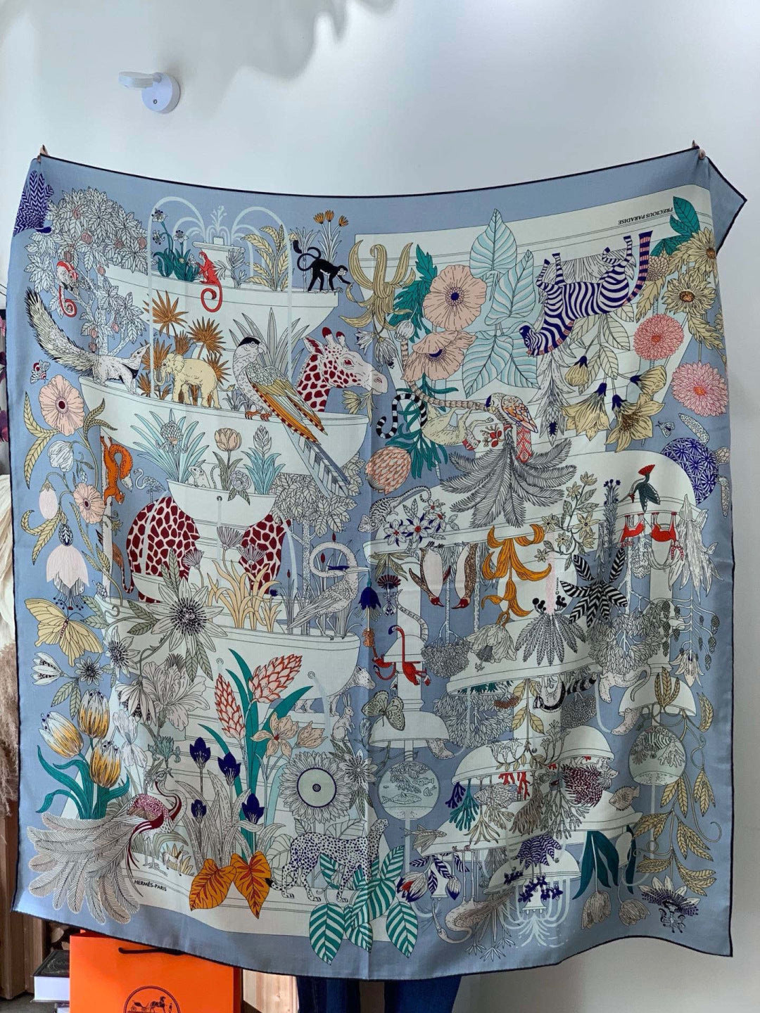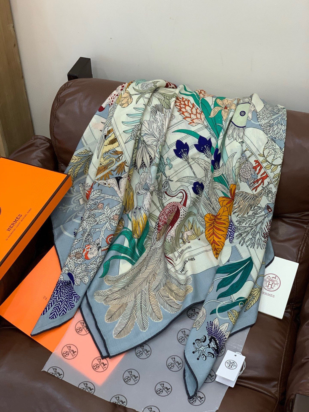 HM 25s Rainbow Scarf 140cm Blue Colorful Cashmere Silk 970928