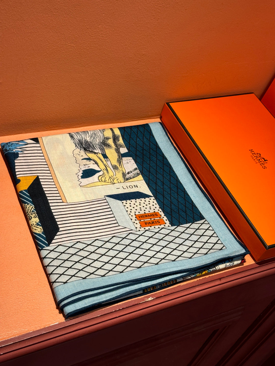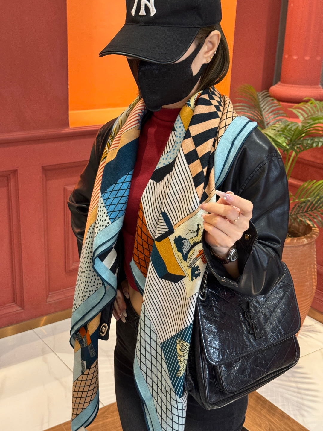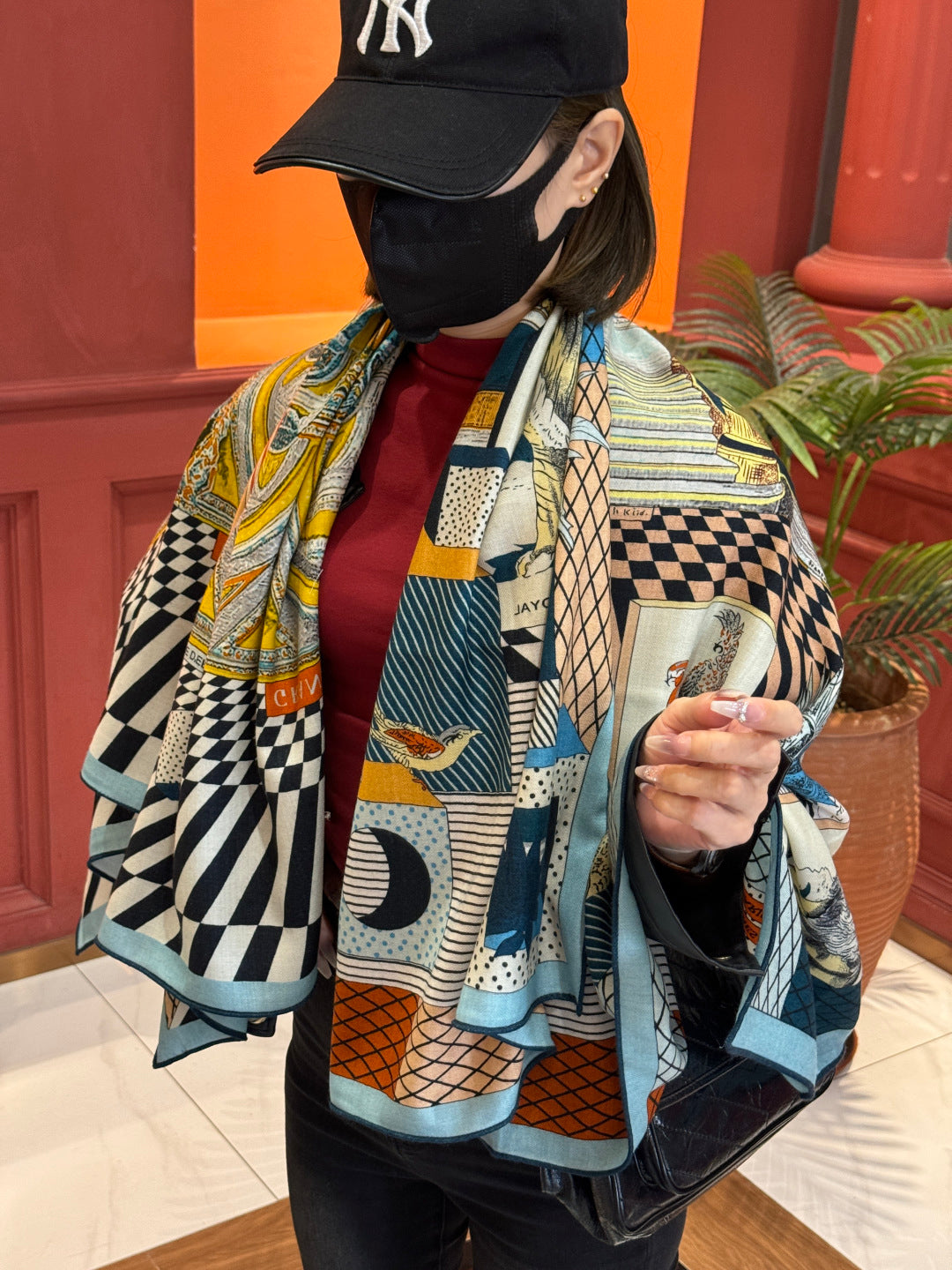 HM 25s Reversible Scarf 140cm Blue Beige Cashmere 976279