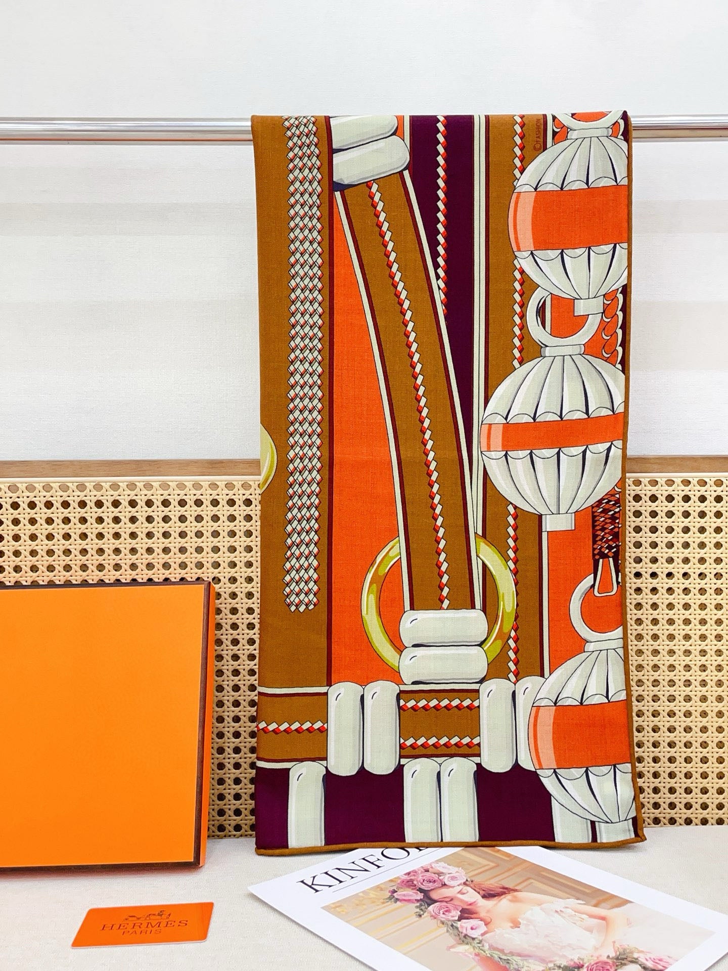 HM 25s Scarf 140cm Brown Orange Cashmere 973322