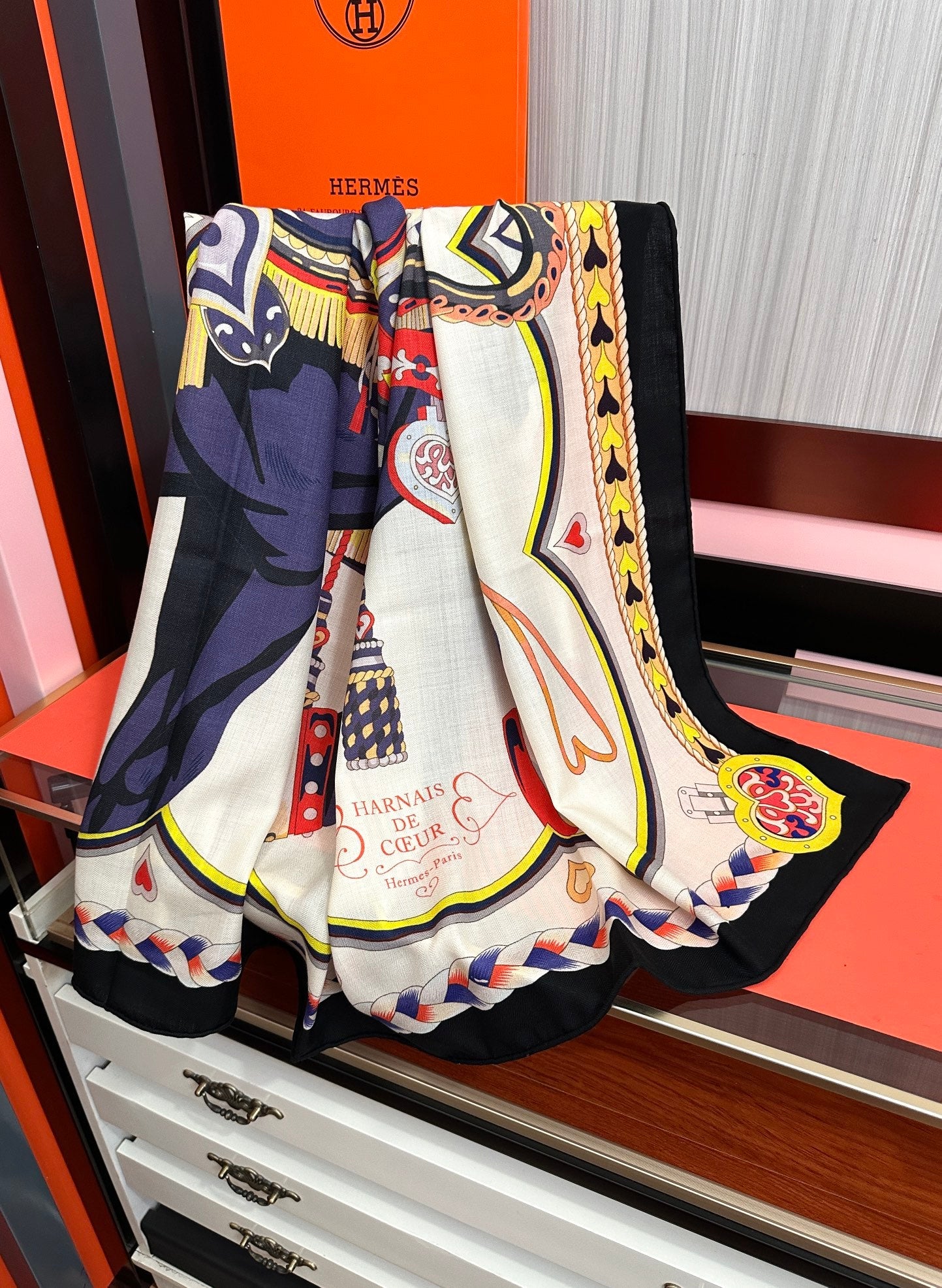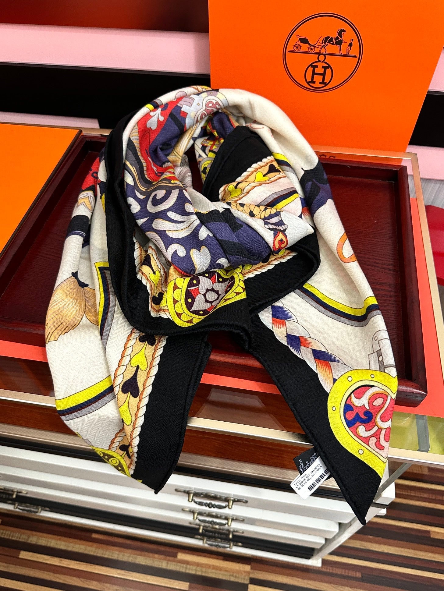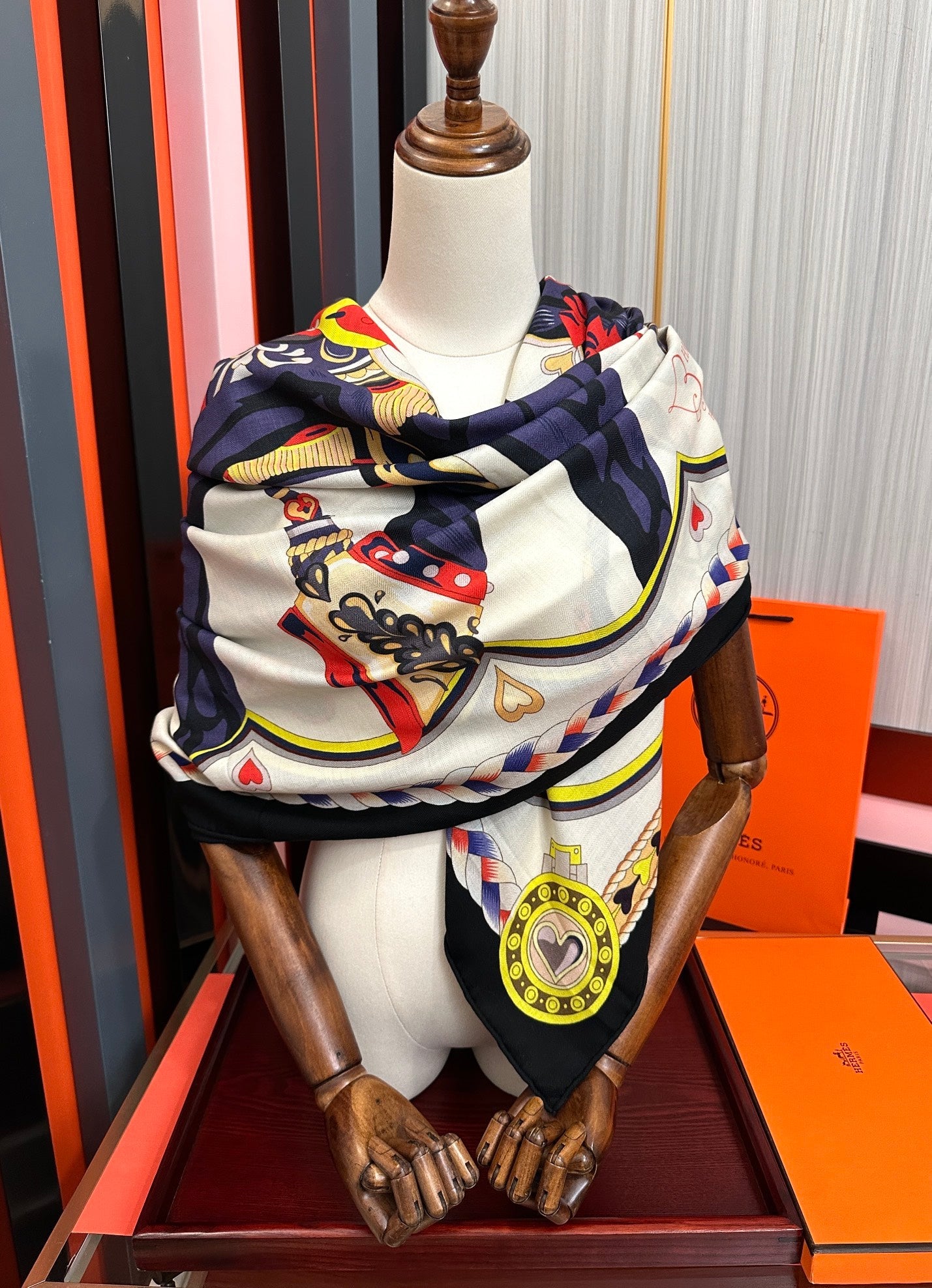 HM 25s Scarf 140cm Purple Beige Cashmere Silk 965622
