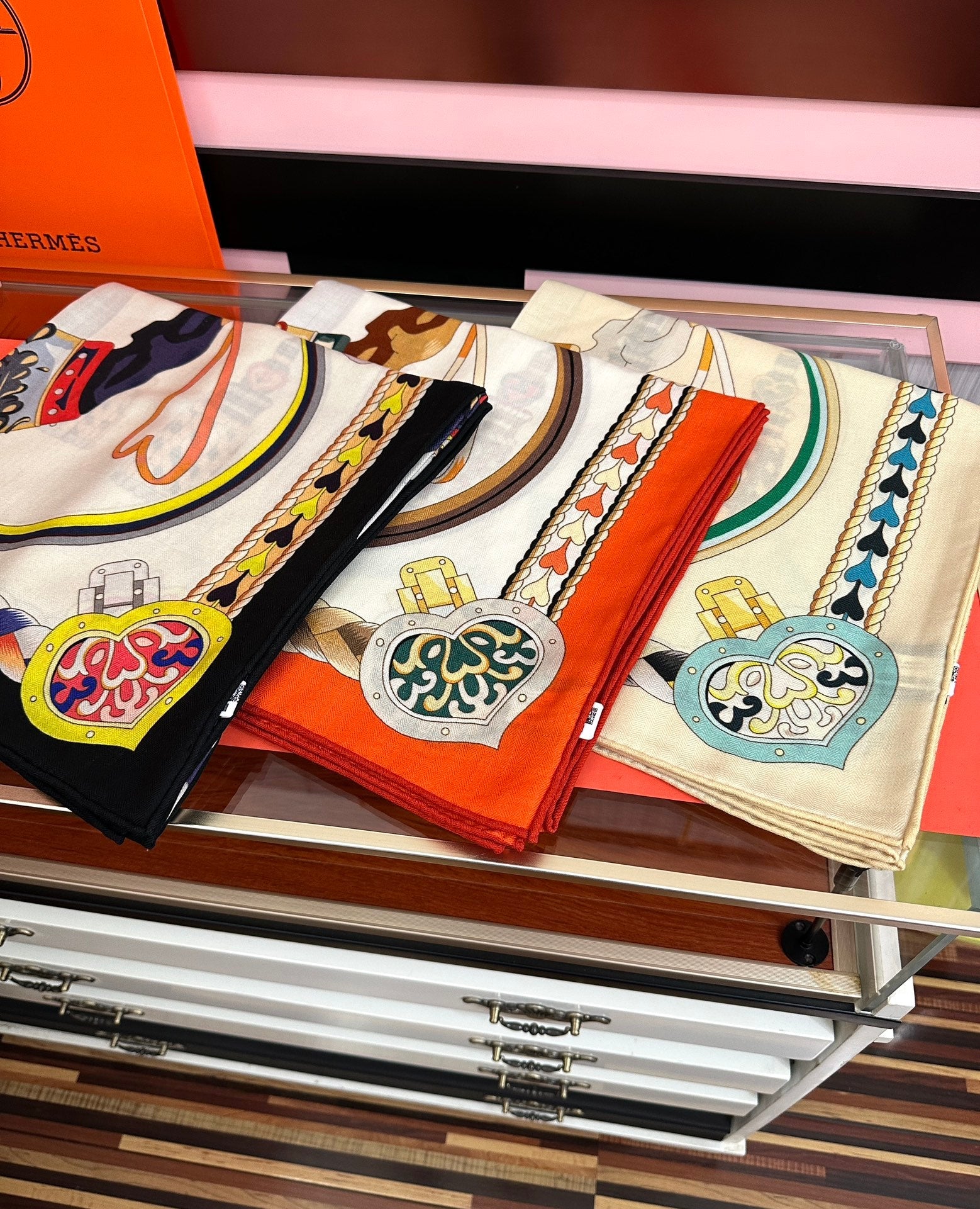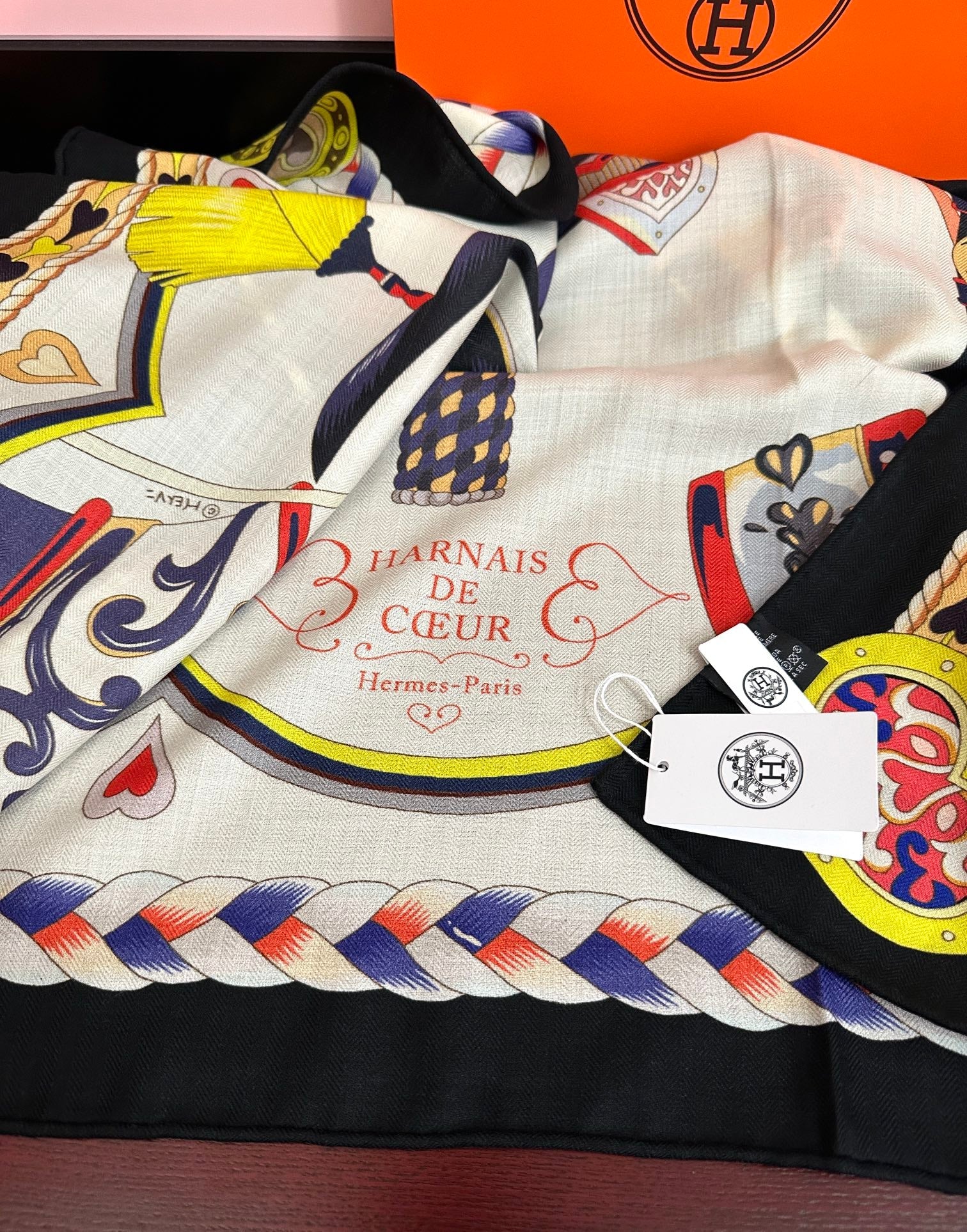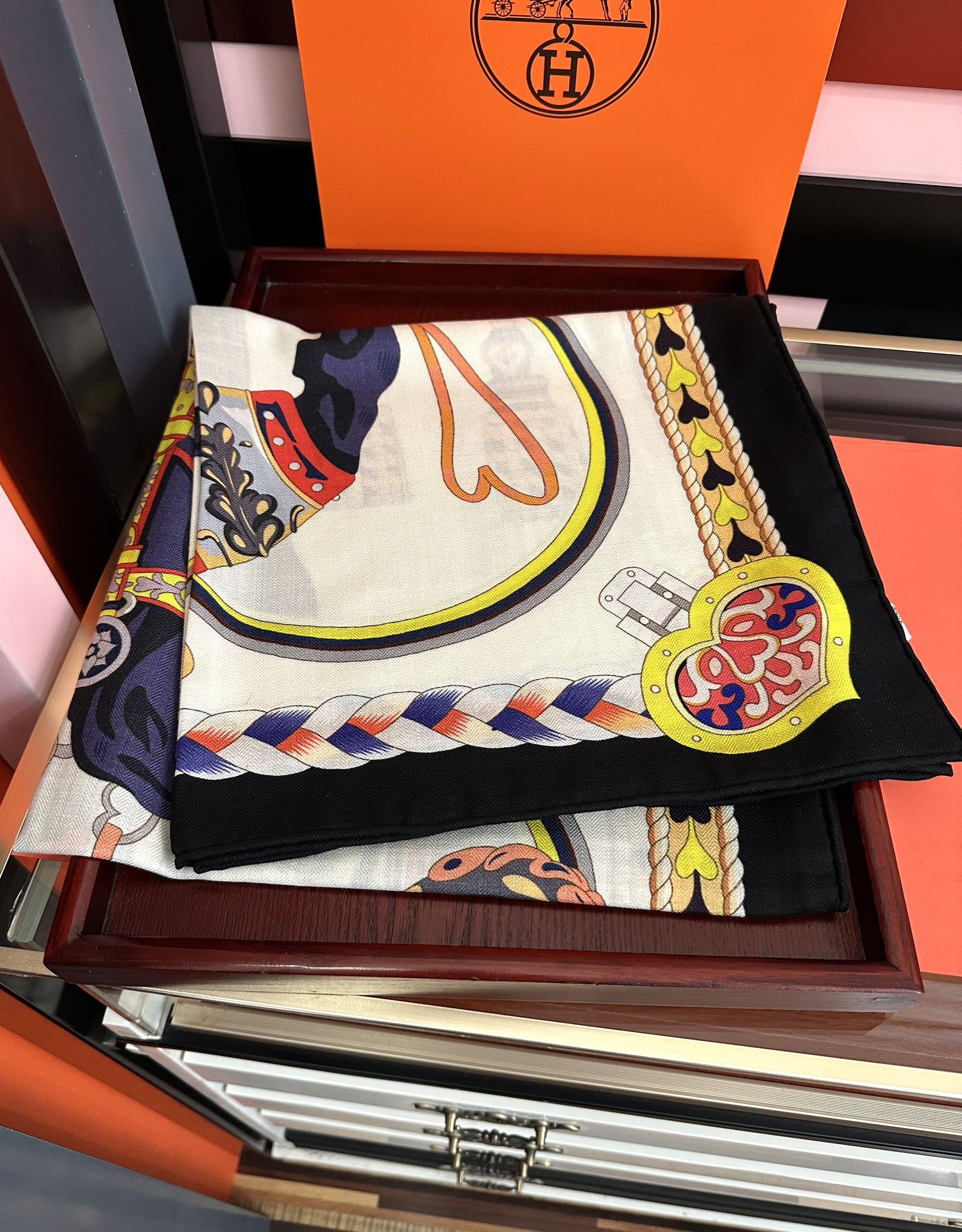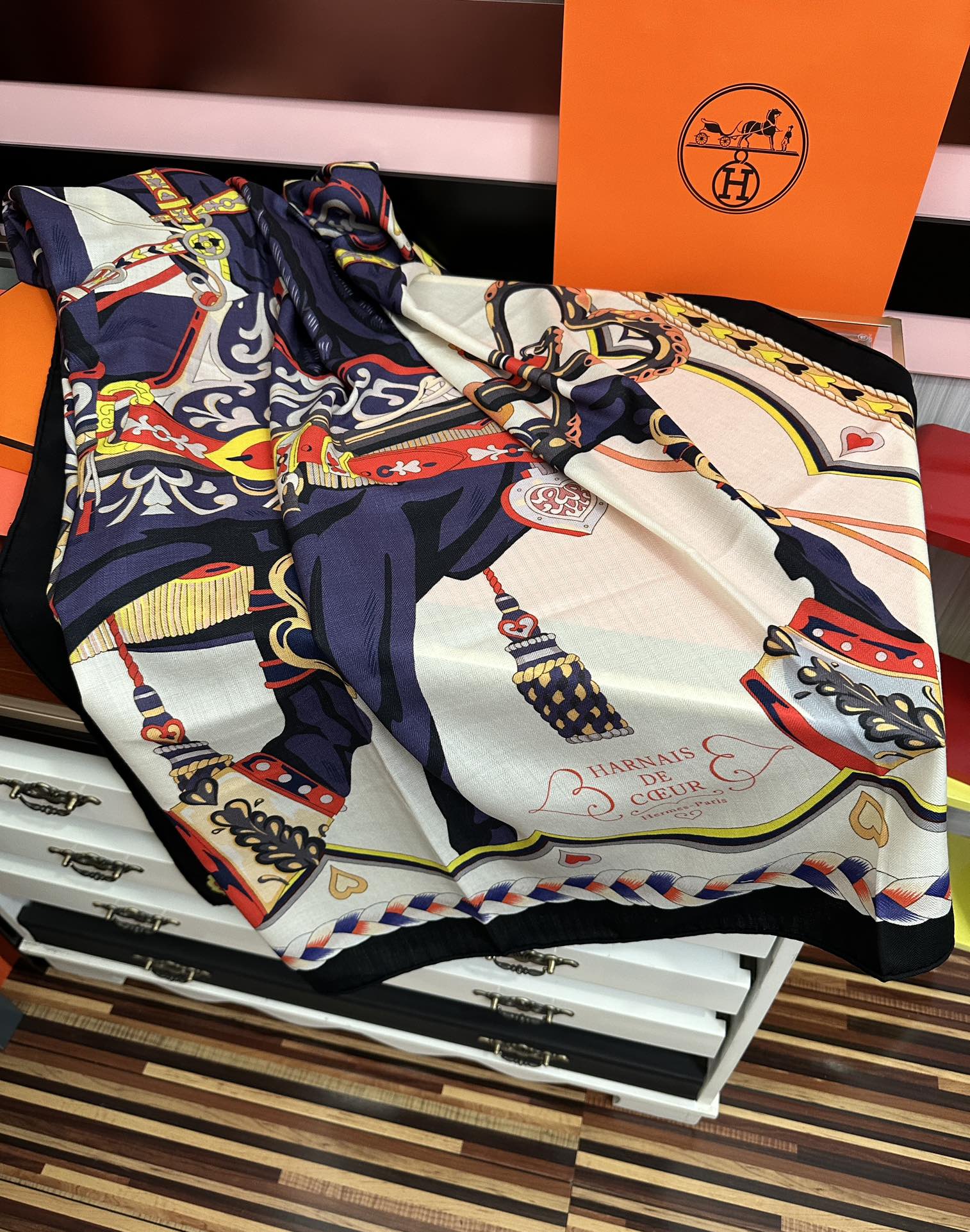 HM 25s Scarf 140cm Purple Beige Cashmere Silk 965622