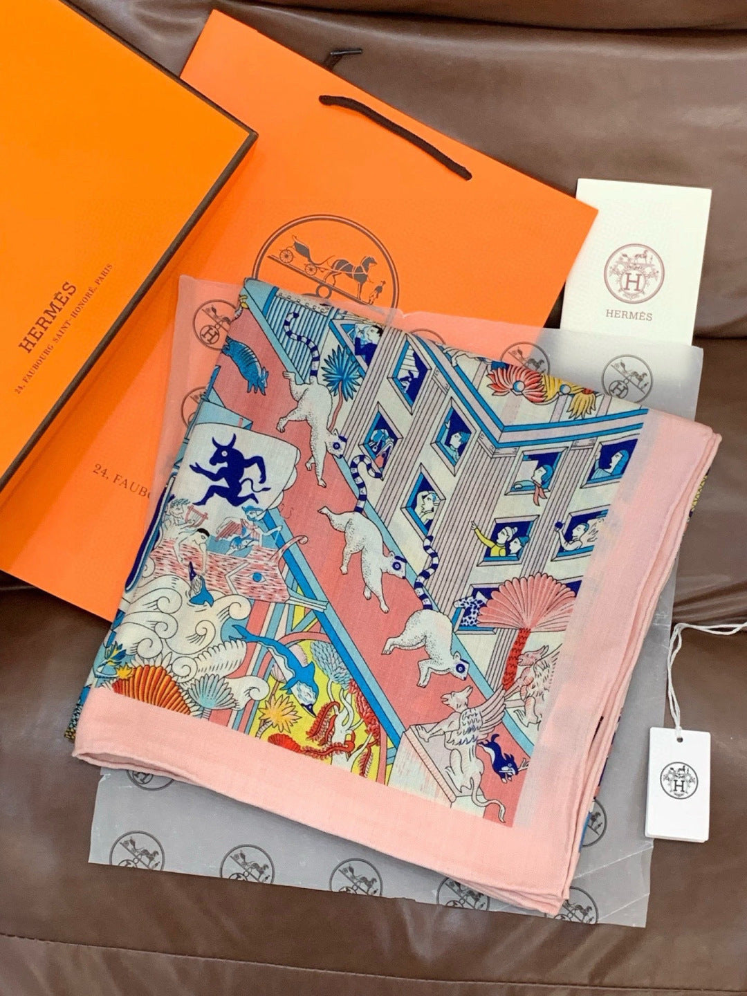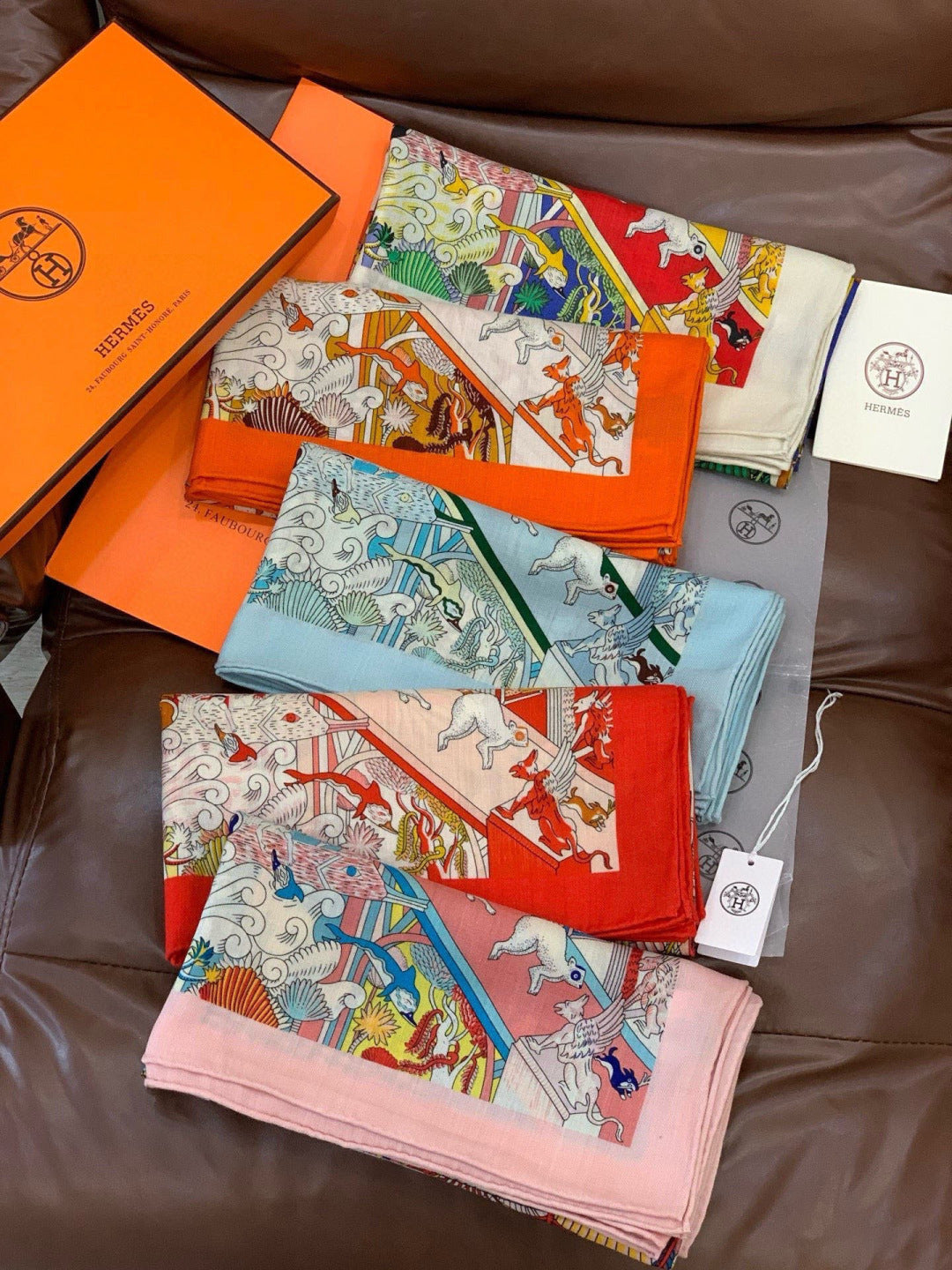 HM 25s Scarf 140cm Blue Multicolor Cashmere 973038