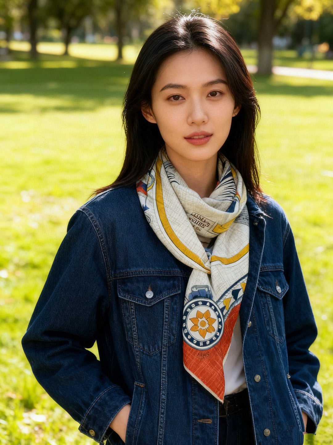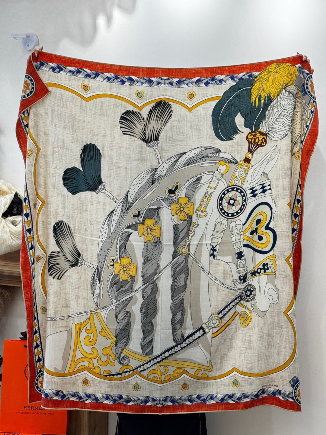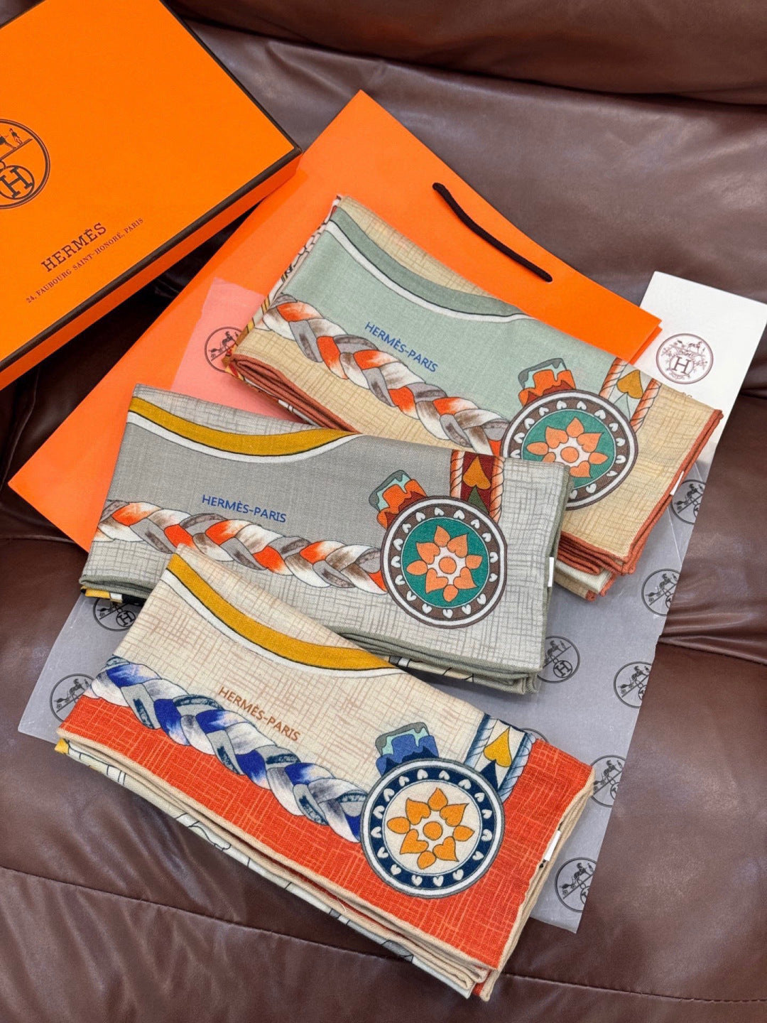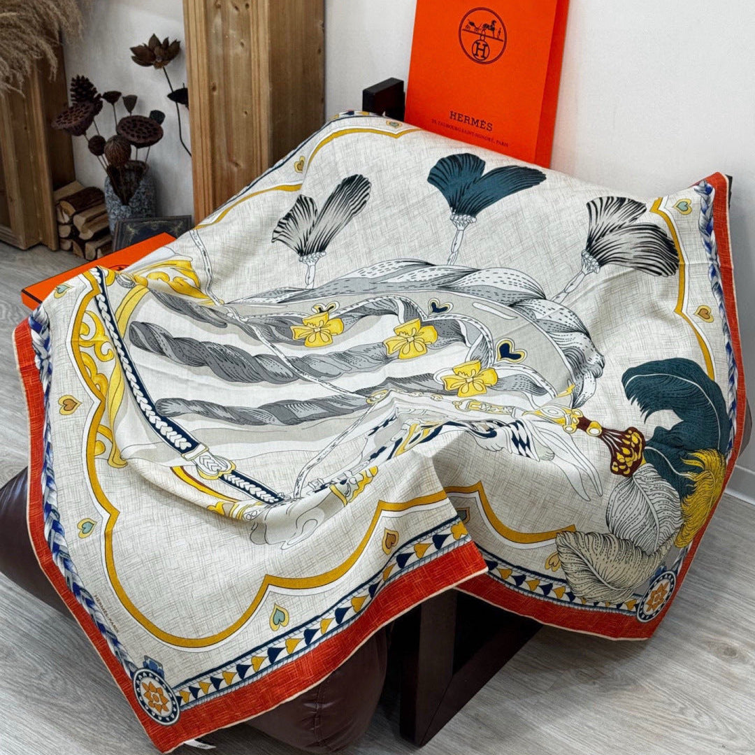 HM 25s Velvet Square Scarf 140cm Beige Orange Cashmere 976219