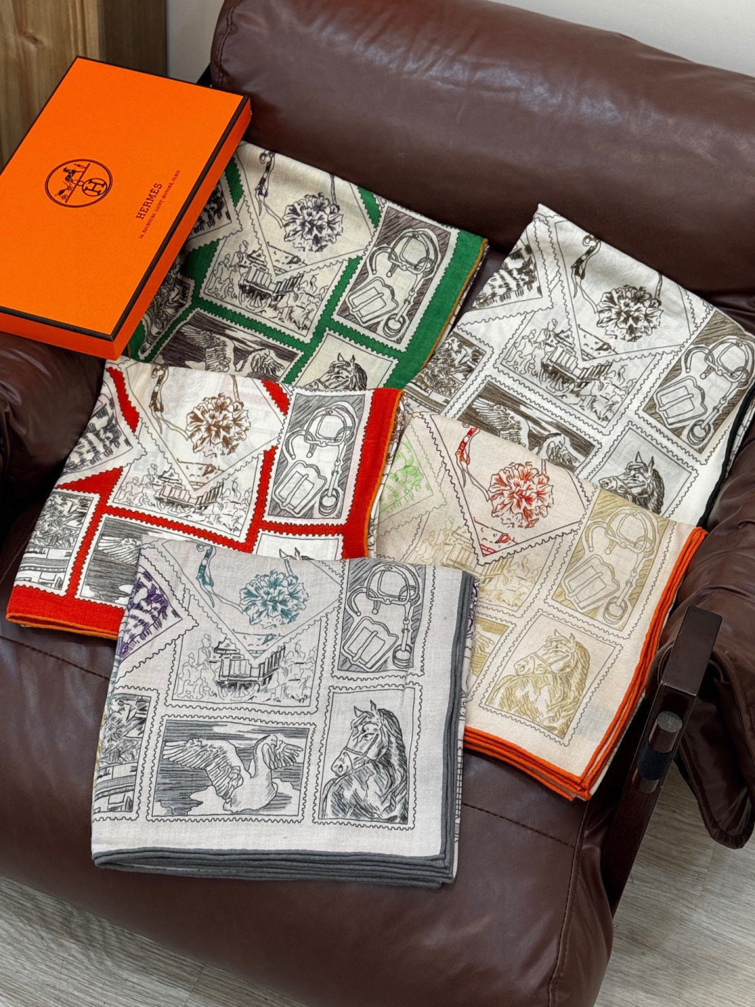 HM 25s Velvet Square Scarf 140cm Blue White Black Cashmere Silk 970939