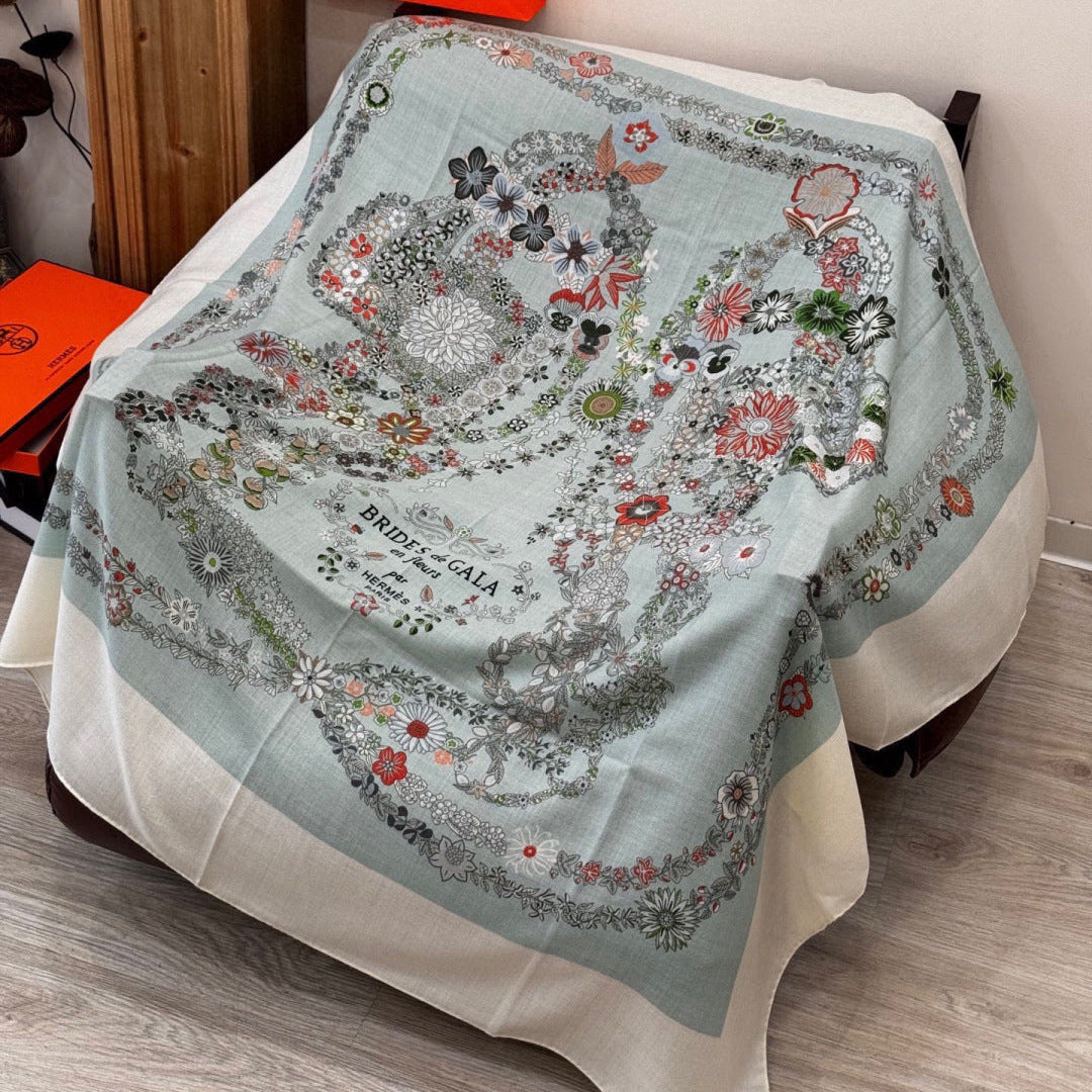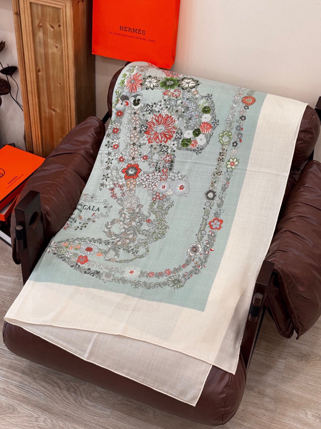 HM 25s Velvet Square Scarf 140cm Light Beige Cashmere 976214