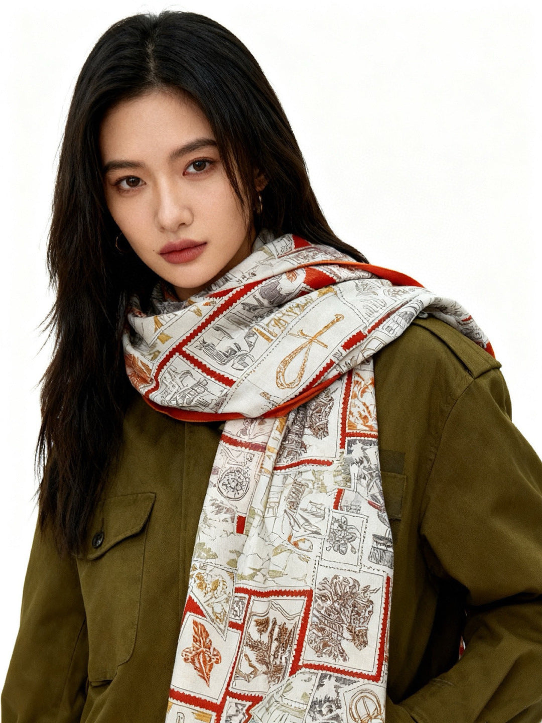 HM 25s Velvet Square Scarf 140cm Orange White Black Cashmere Silk 970940