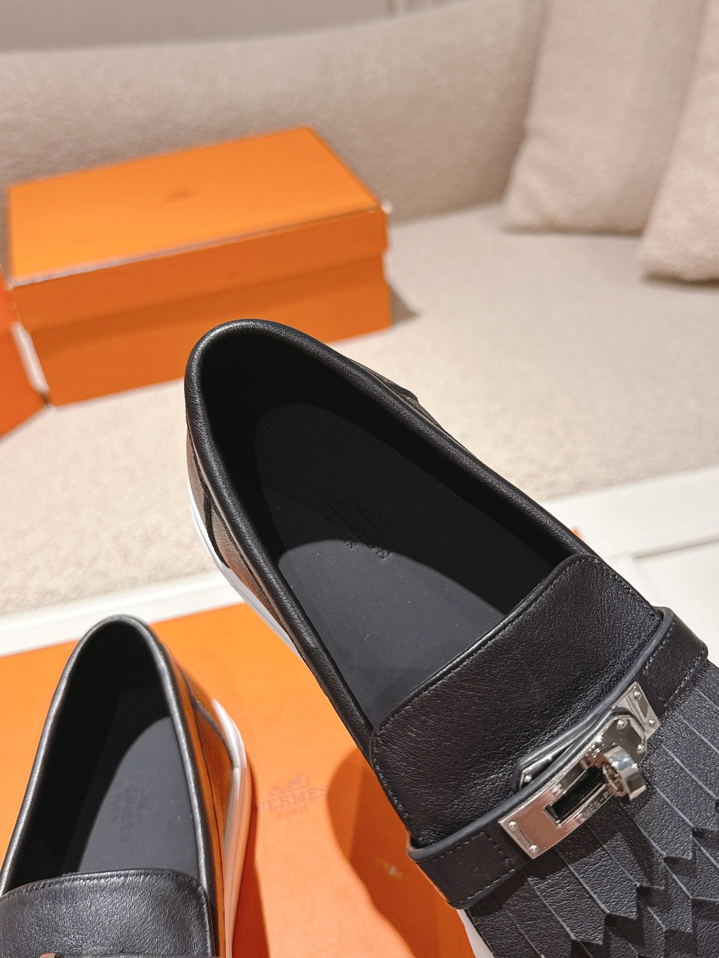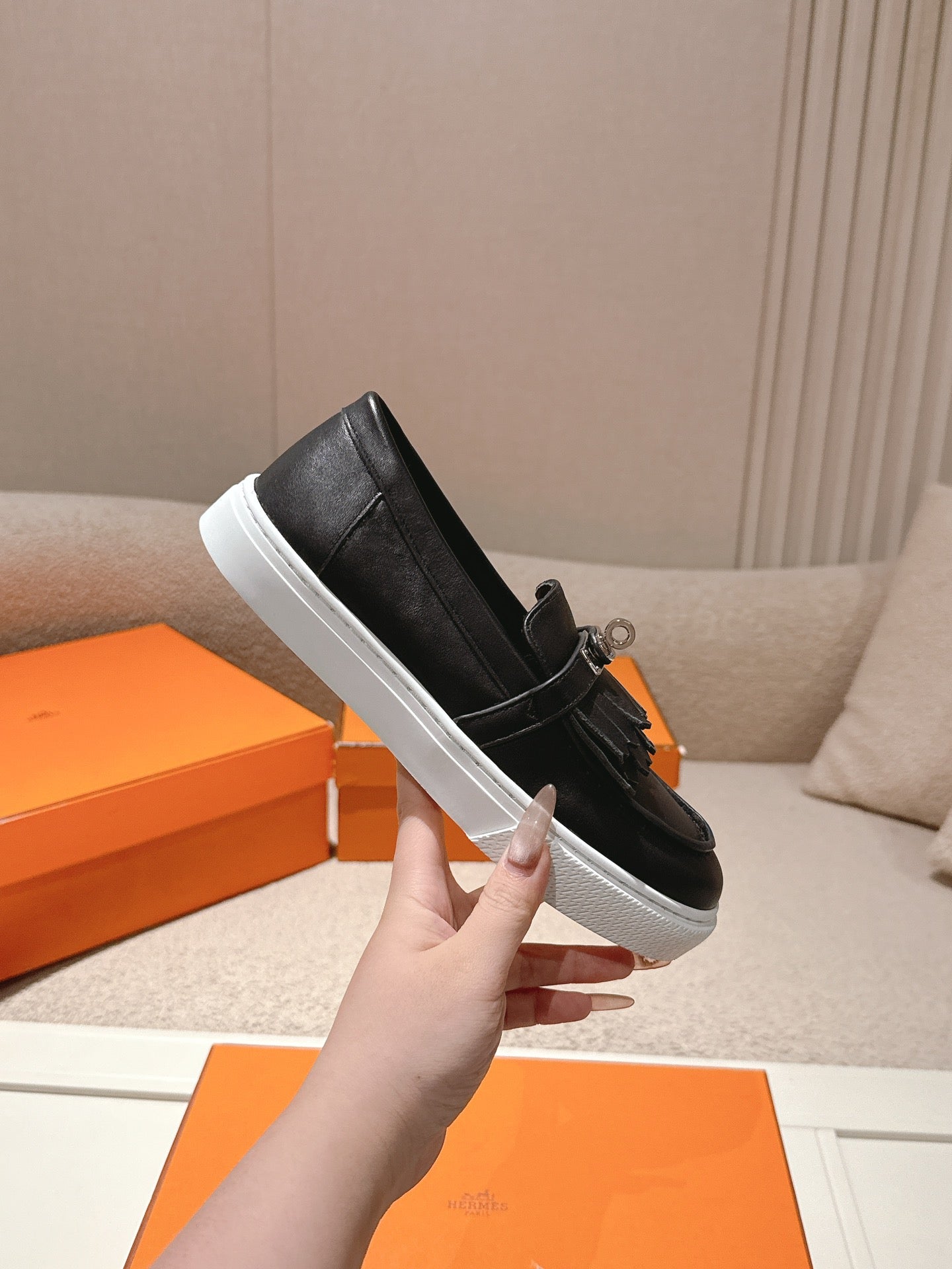HM 25ss Platform Loafers Kelly Buckle Black Cowhide 577476