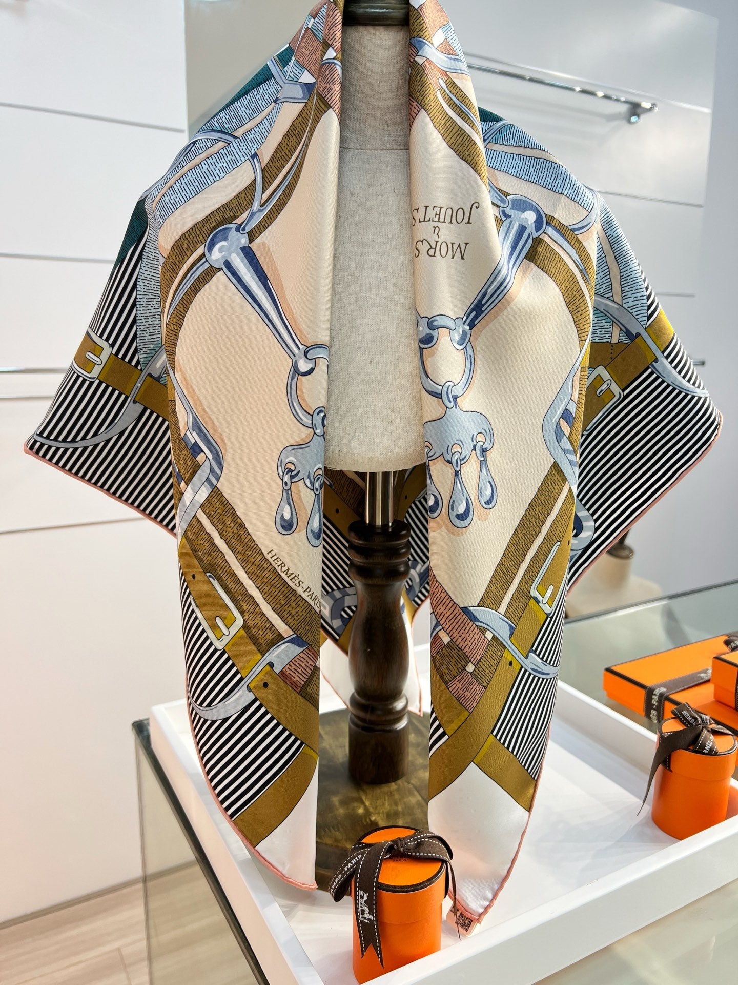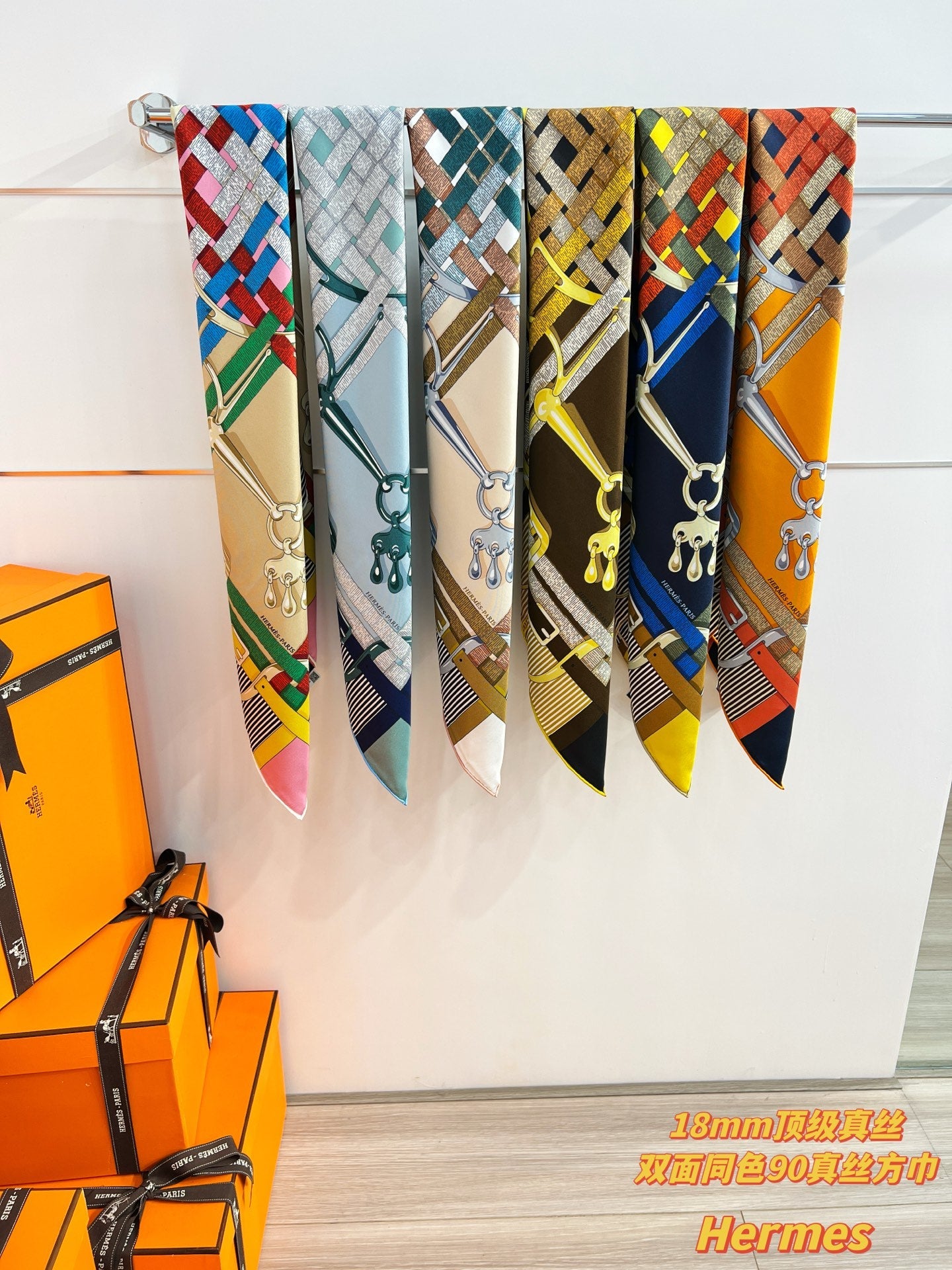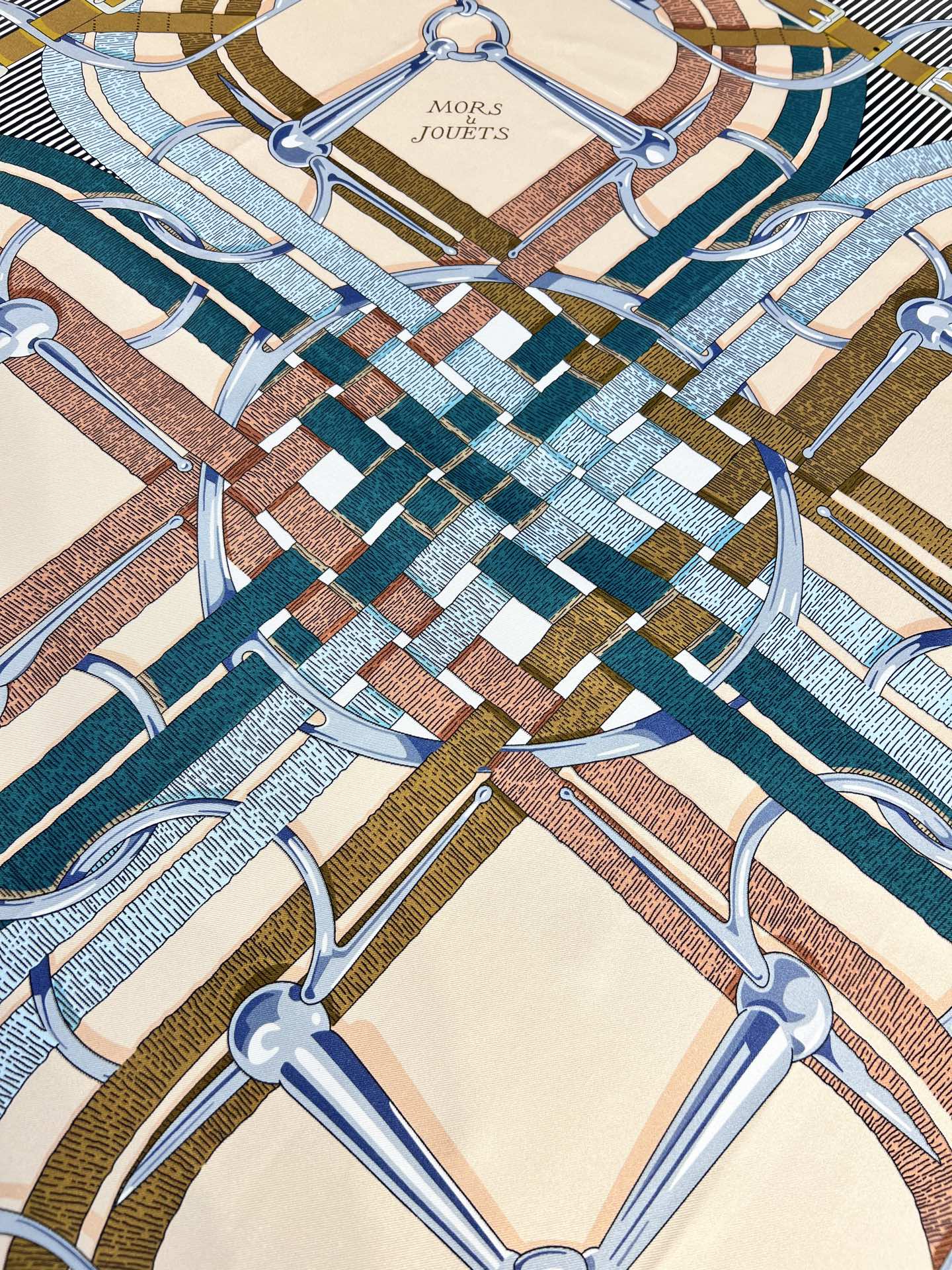 HM 26s Double-sided Scarf 90 Beige Colorful Mulberry Silk 152280