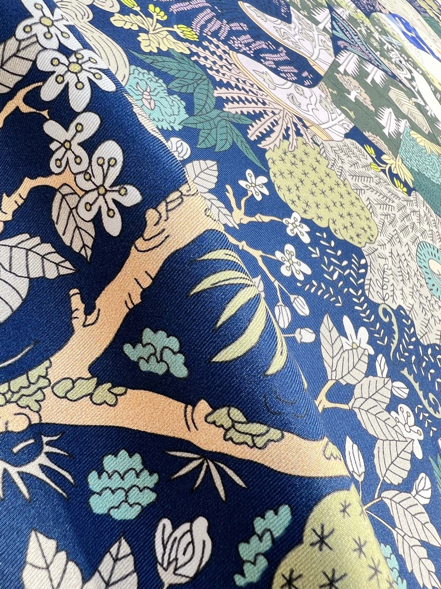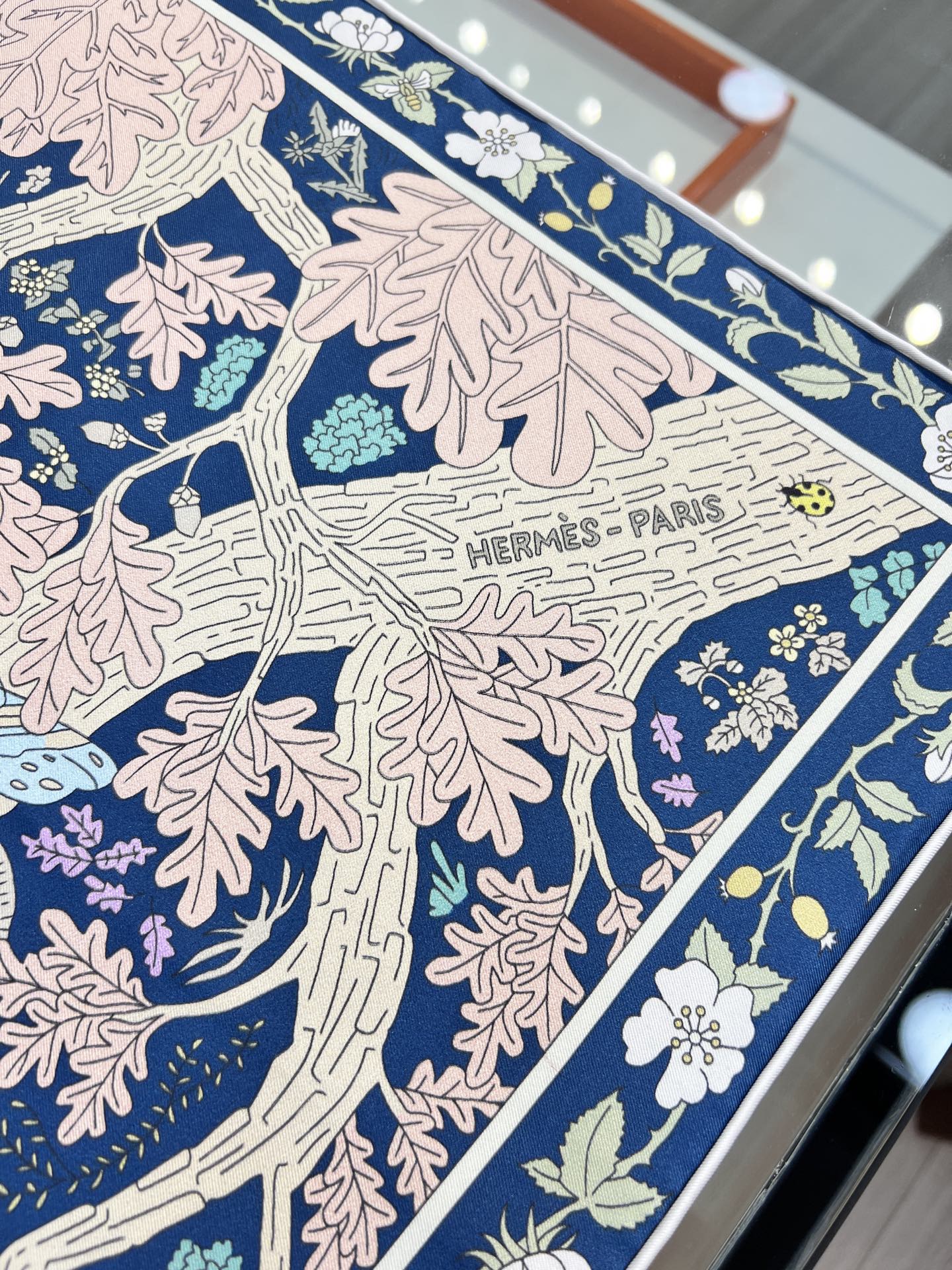 HM 26s Double-sided Scarf 90 Blue Gray Colorful Mulberry Silk 152370