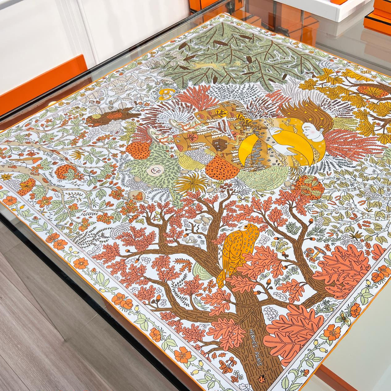 HM 26s Double-sided Scarf 90 Green Brown Colorful Mulberry Silk 152373