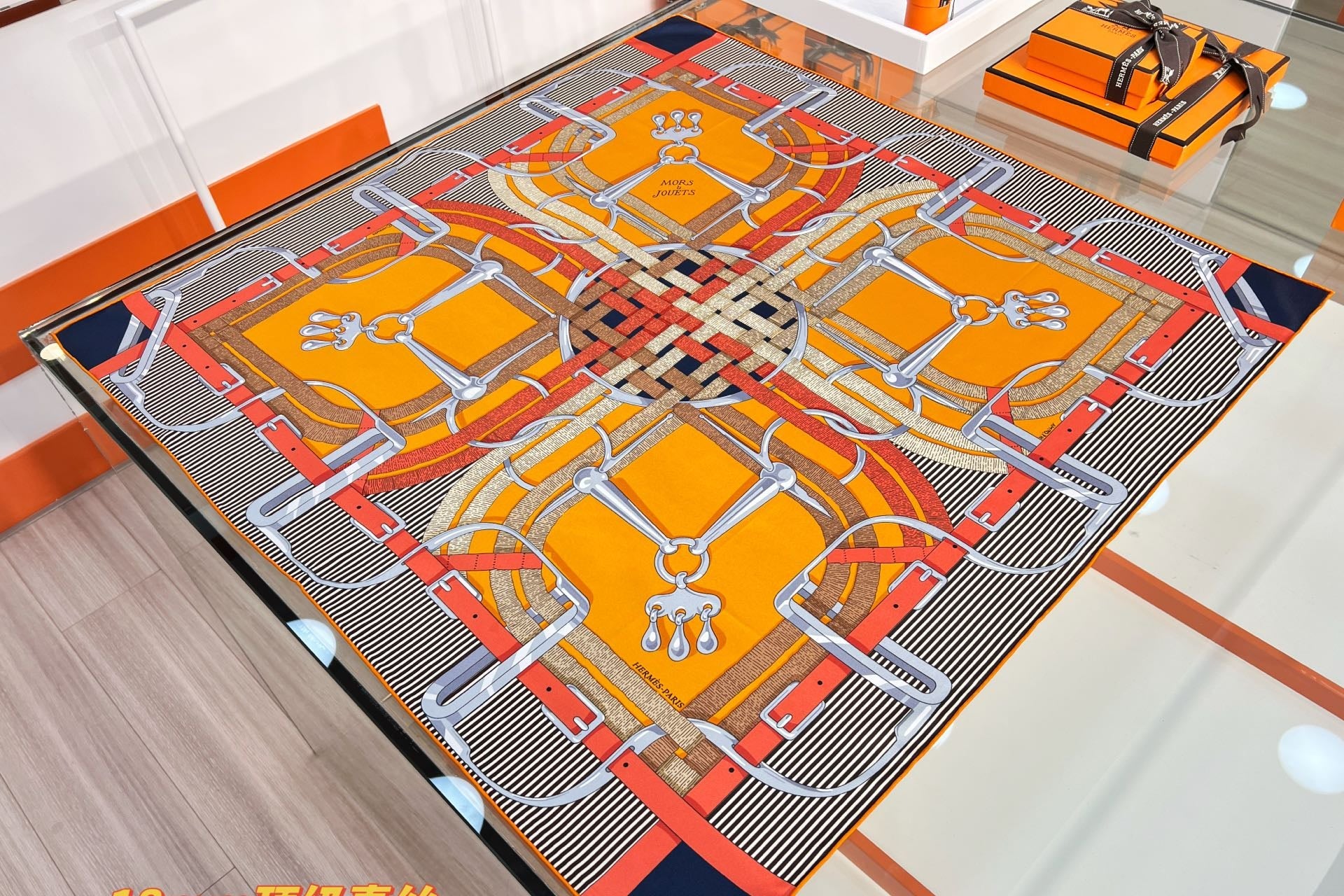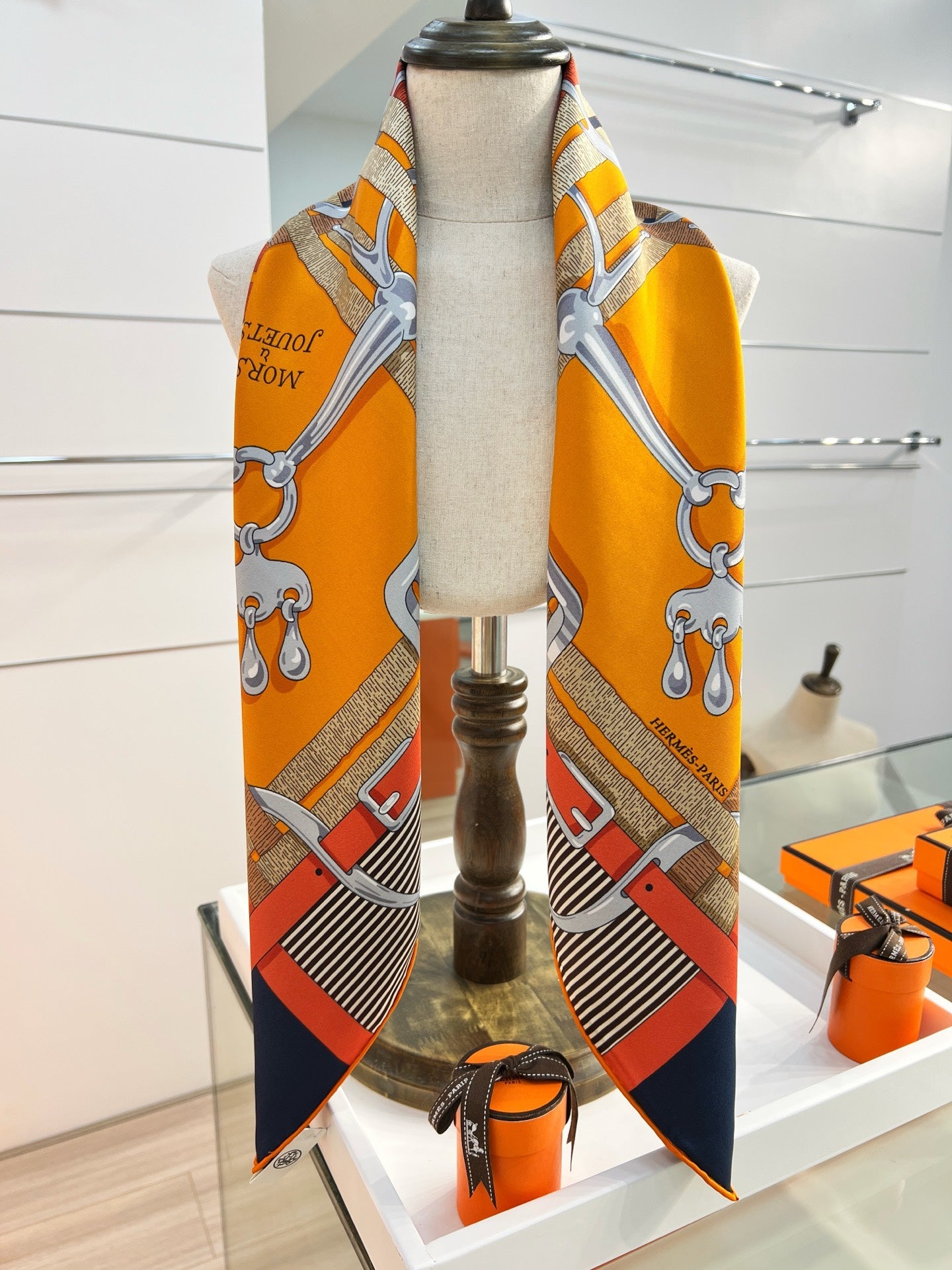 HM 26s Double-sided Scarf 90 Orange Colorful Mulberry Silk 152279