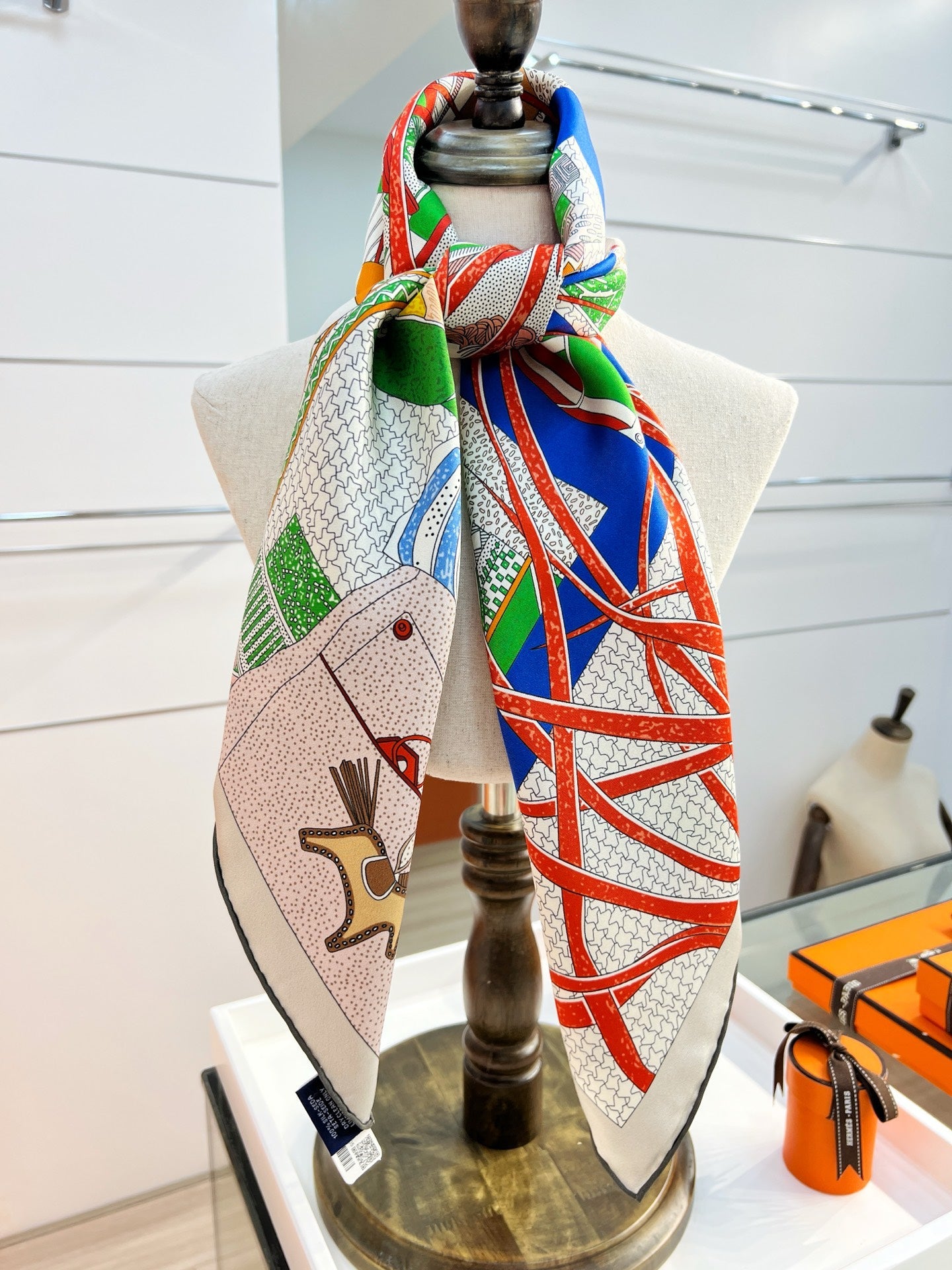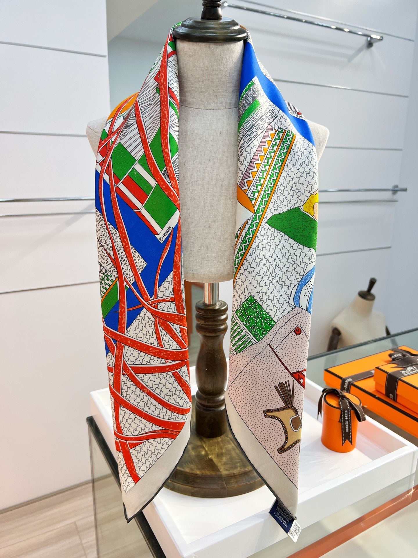 HM 26s Knitting Scarf 90 Red Blue Colorful Mulberry Silk 148044