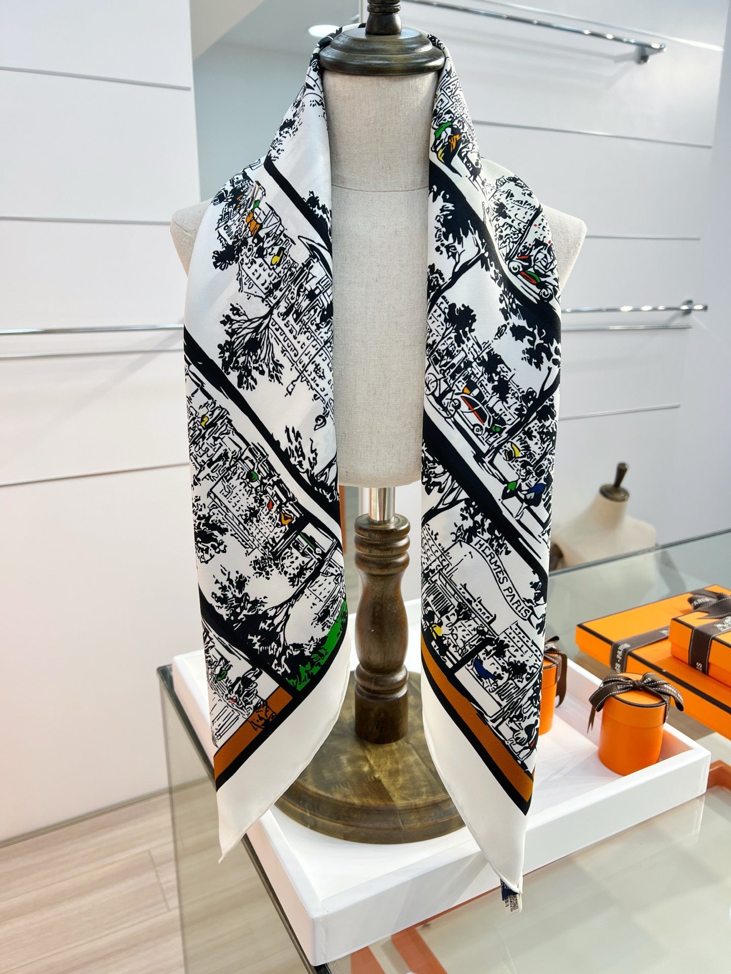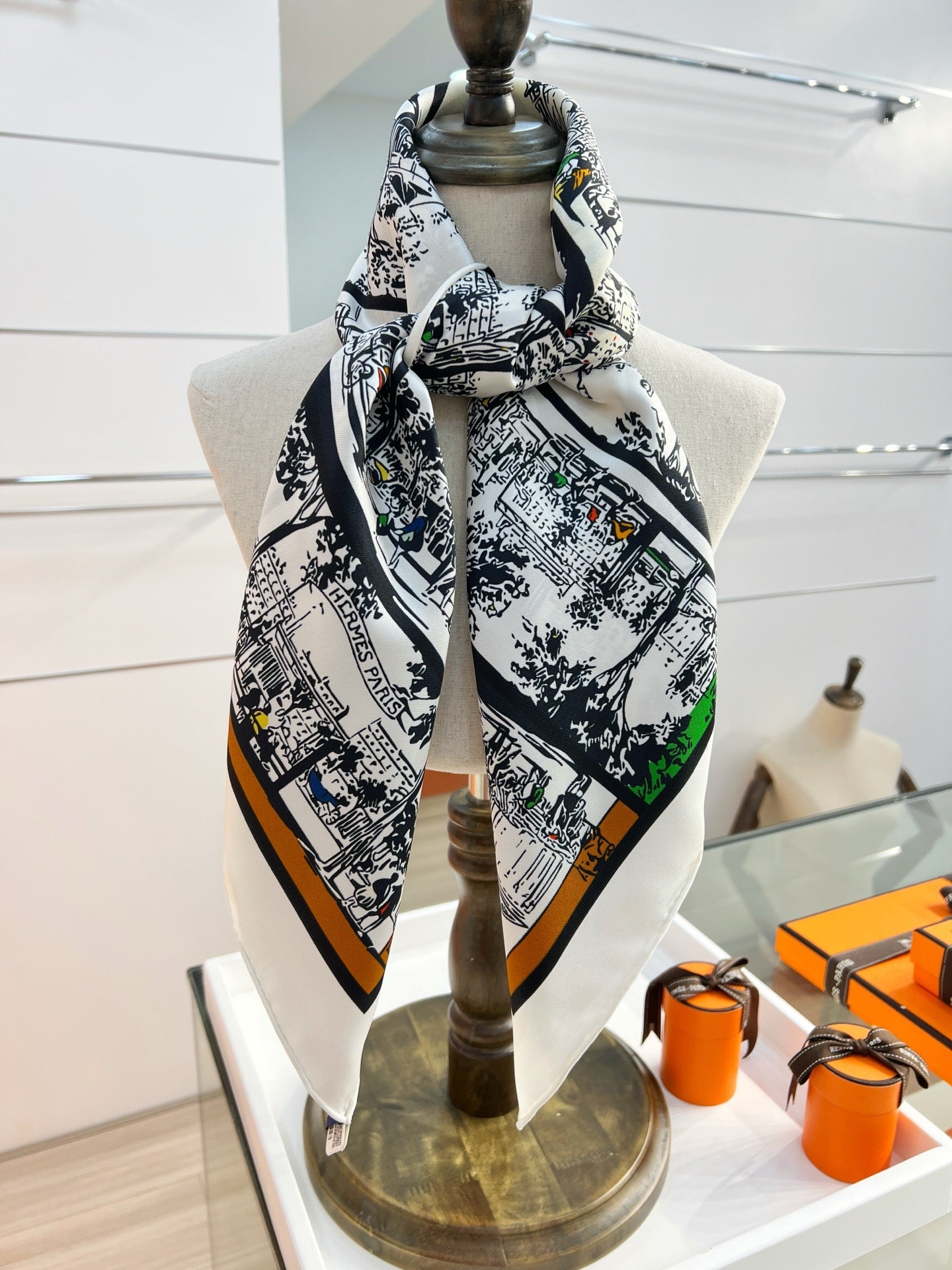 HM 26s Knitting Scarf 90 White Black Colorful Mulberry Silk 147542