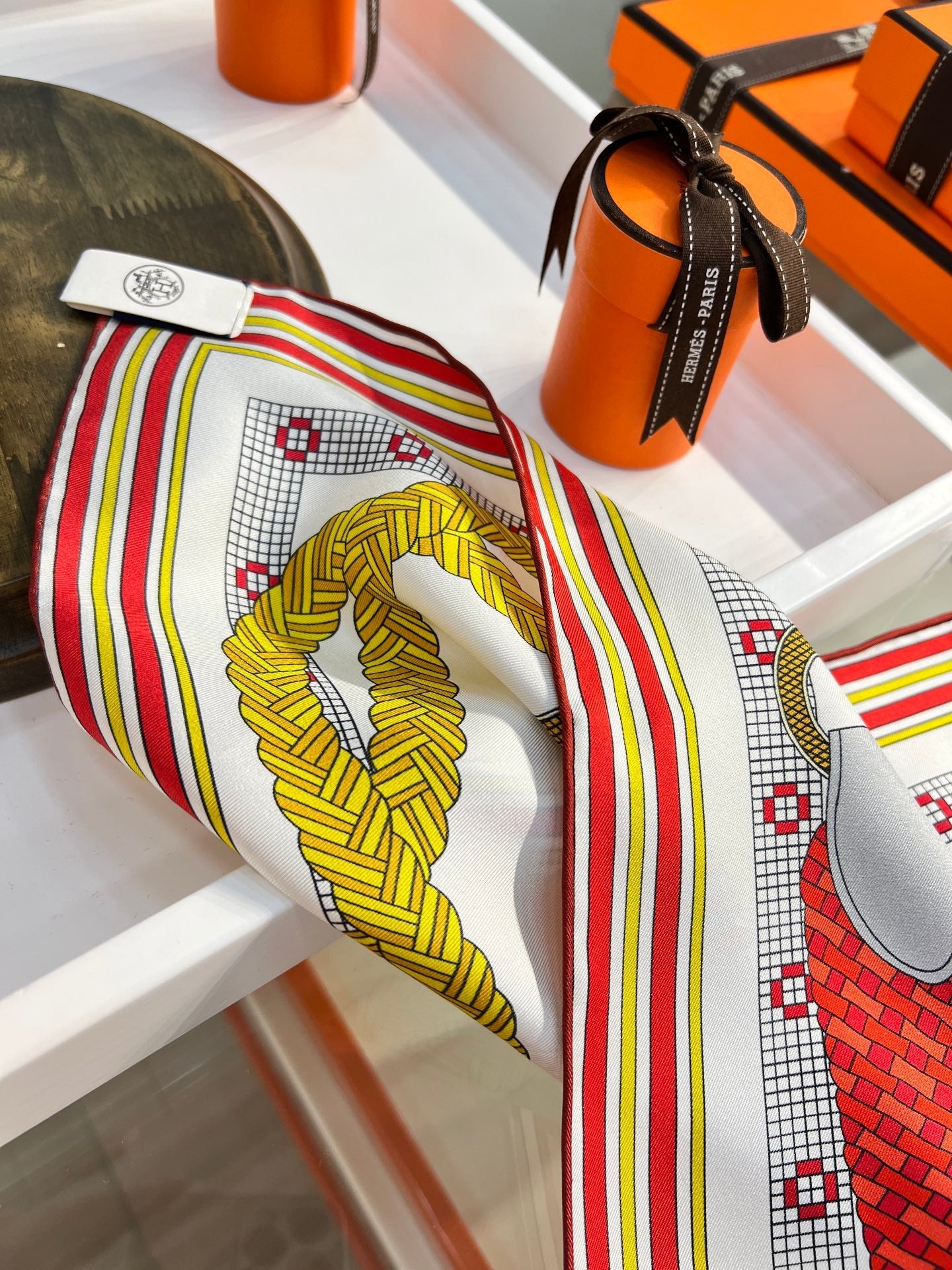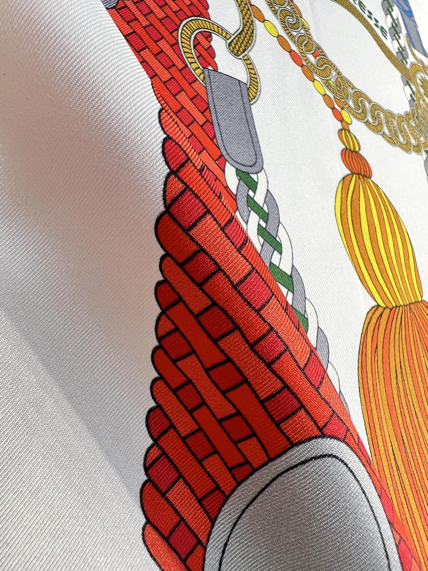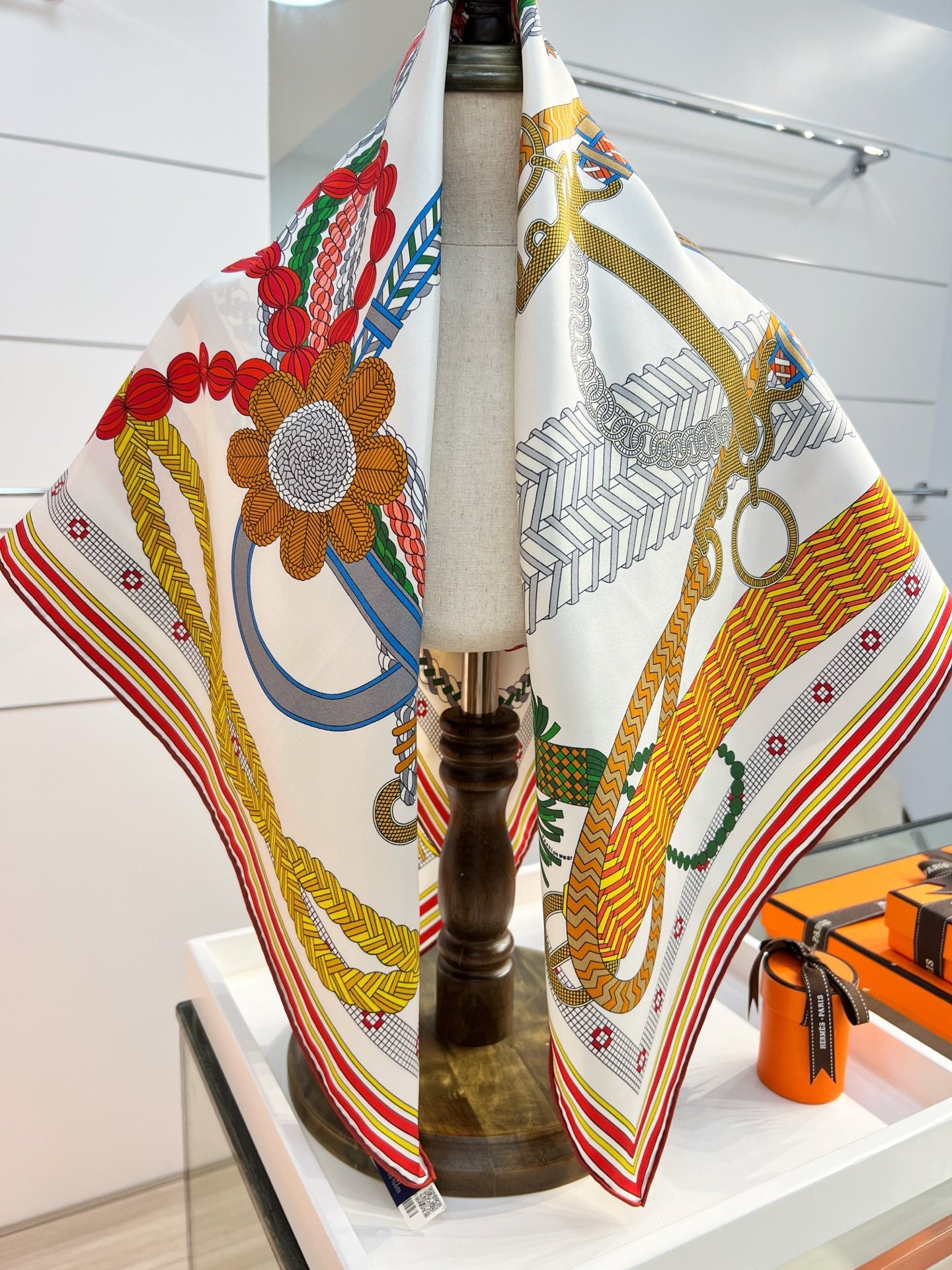 HM 26s Knitting Scarf 90 White Orange Colorful Mulberry Silk 148056
