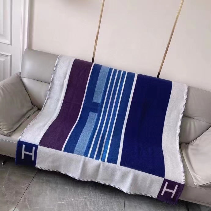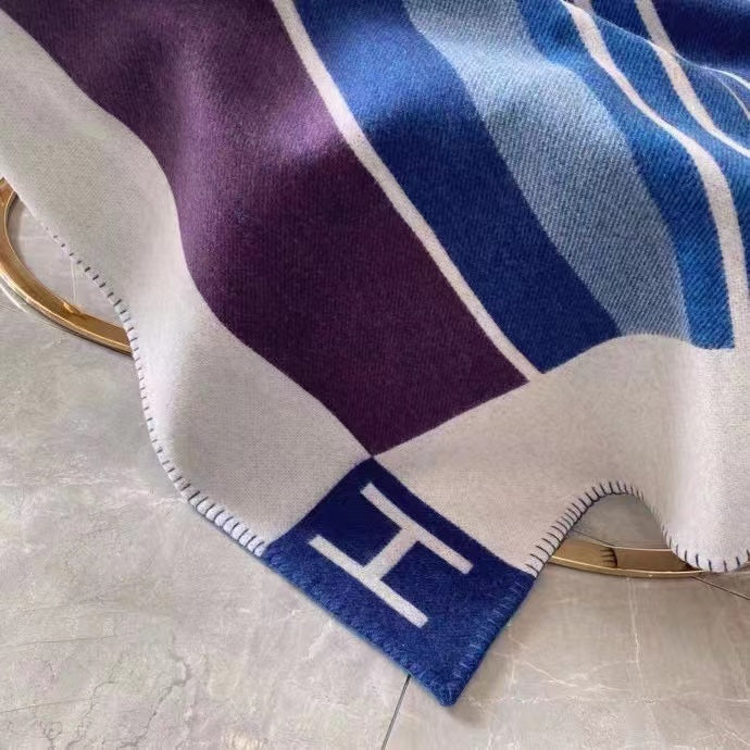 HM Avalon Throw Blanket Ecru Indigo Wool Cashmere