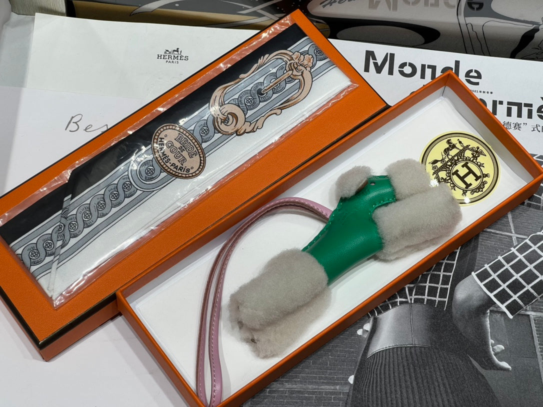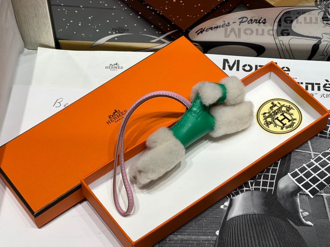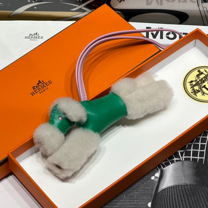 HM Budy Puppy Pendant Charm Green White Wool Cowhide