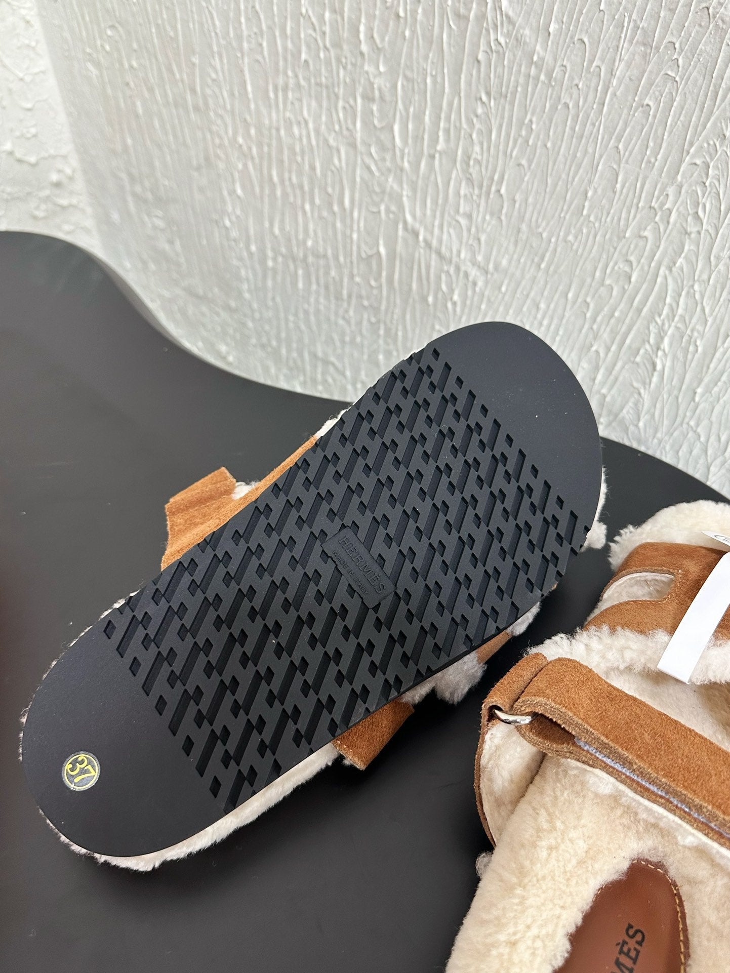 HM Chypre Sandal In Caramel Mix White Suede And Fleece Lining 961140