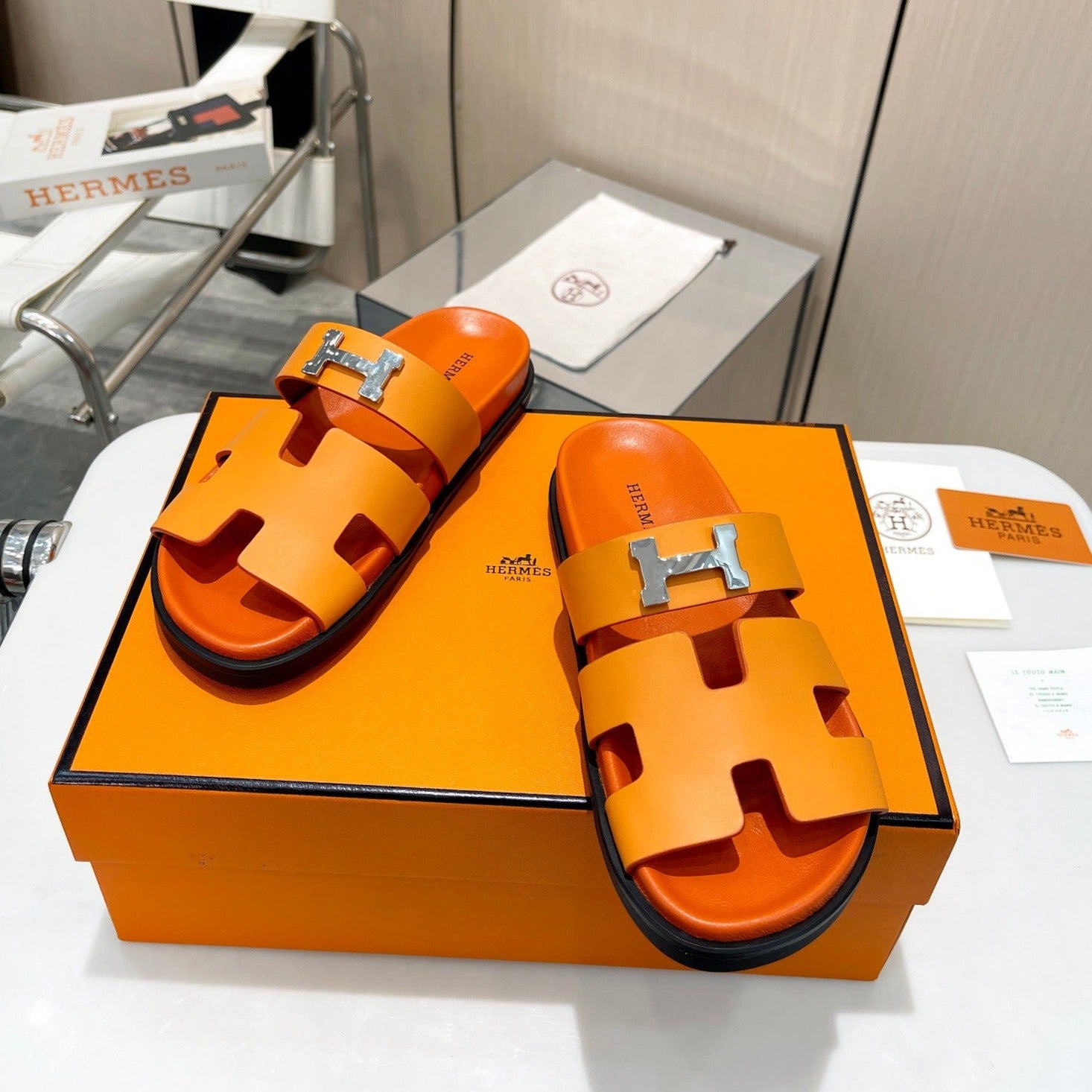 HM CHYPRE SANDAL ORANGE WITH H-BUCKLE CALFSKIN