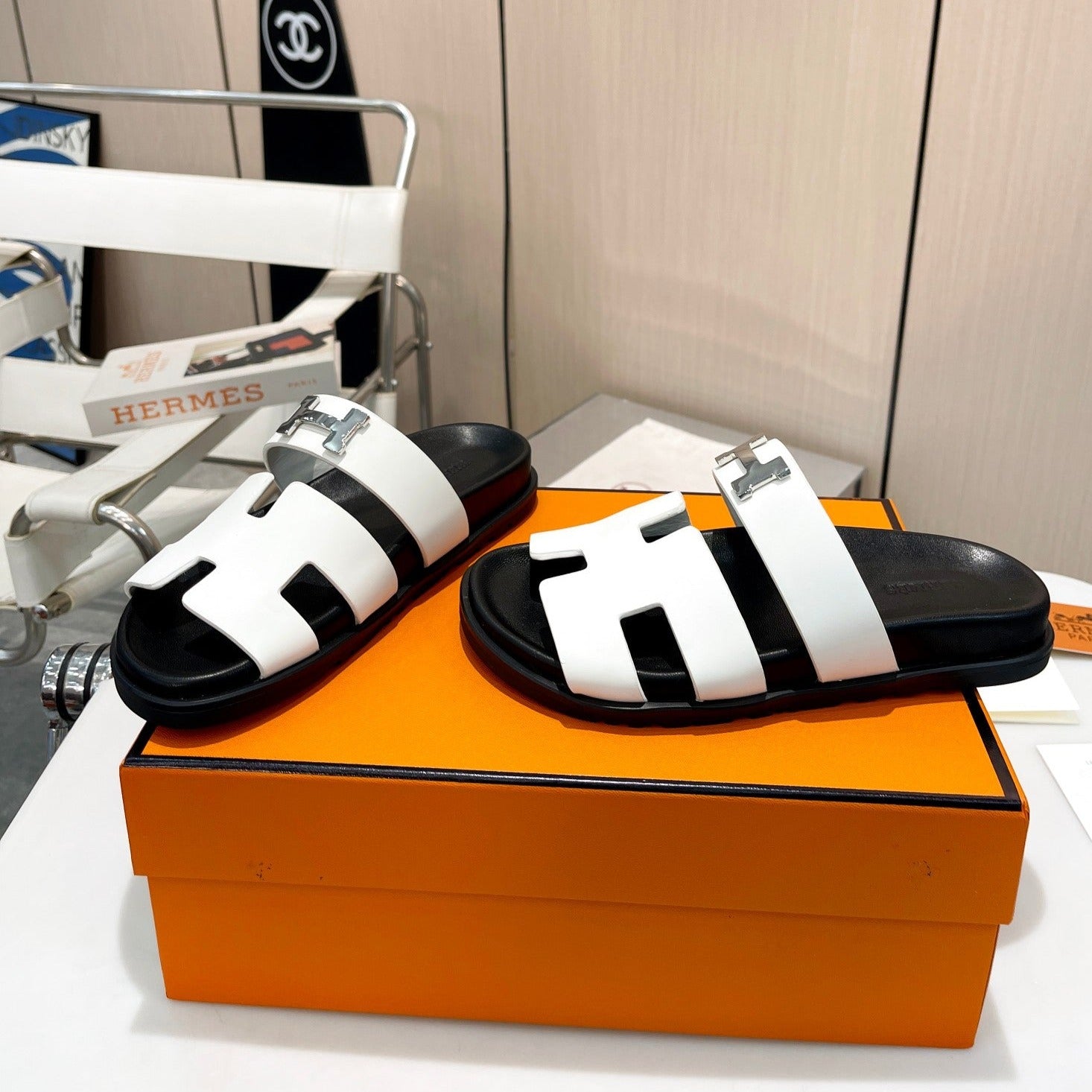 HM CHYPRE SANDAL WHITE WITH H-BUCKLE CALFSKIN