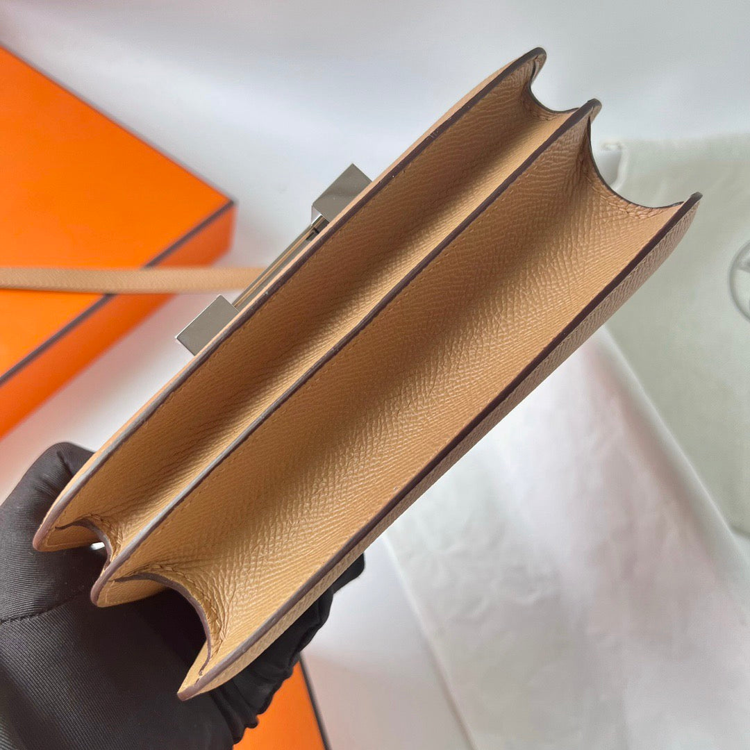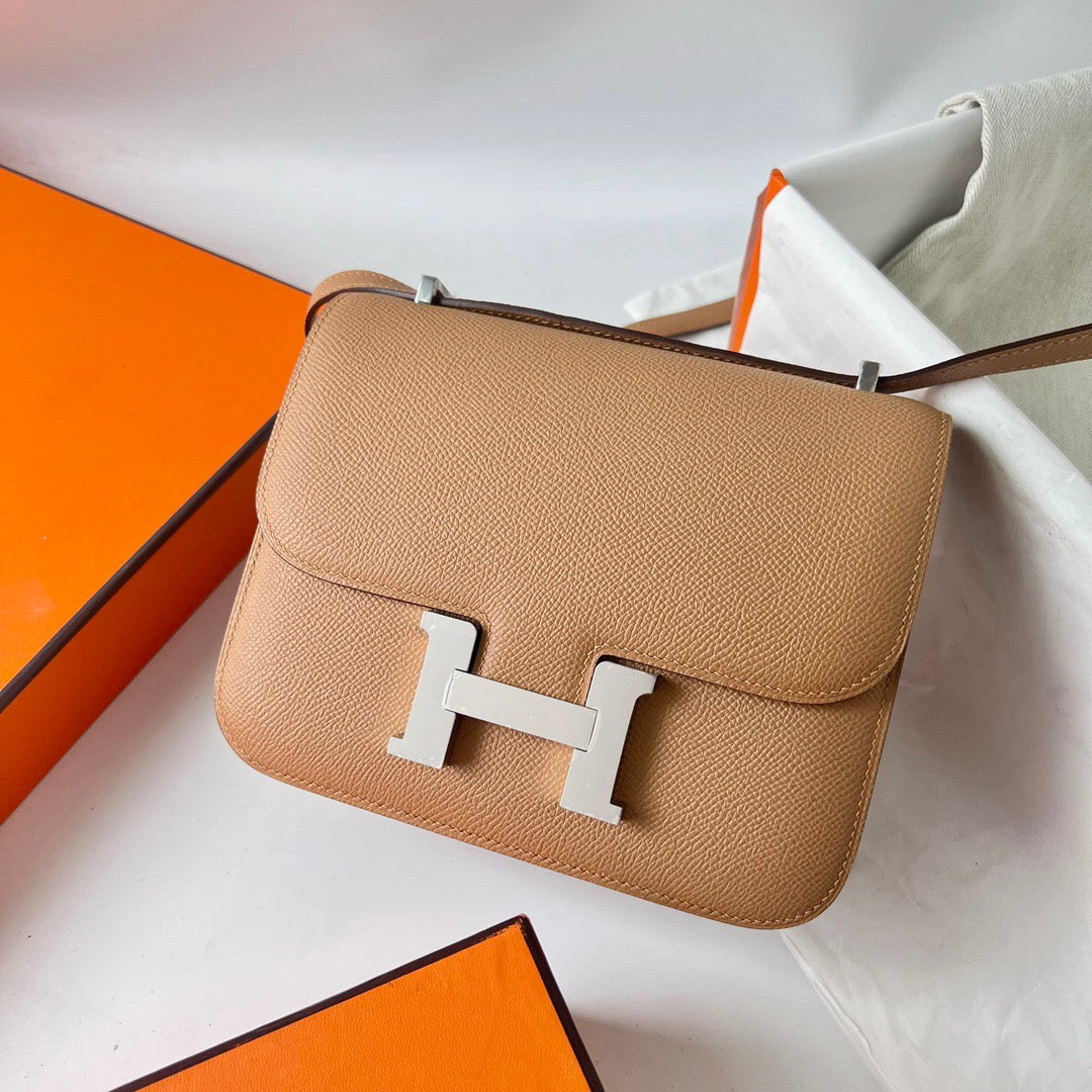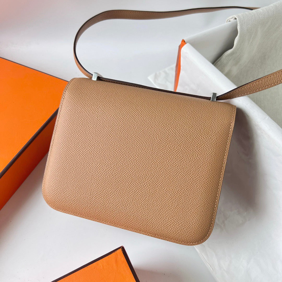 HM Constance Bag Dark Beige Epsom Silver Hardware
