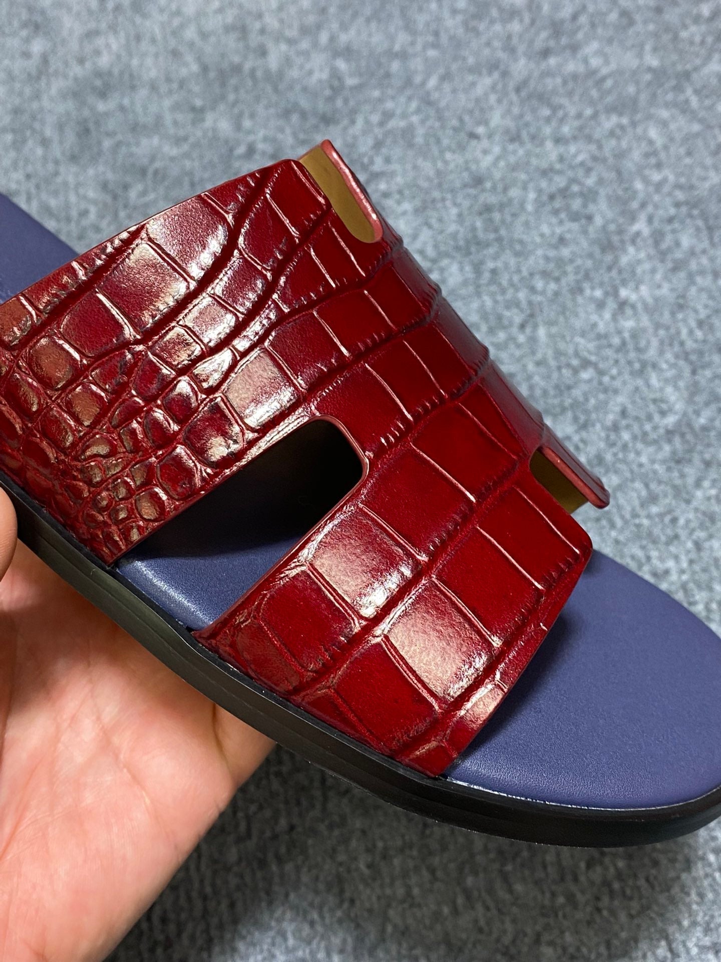 HM IZMIR CROCODILE MOTIF SANDAL INDIGO AND BRICK CALFSKIN