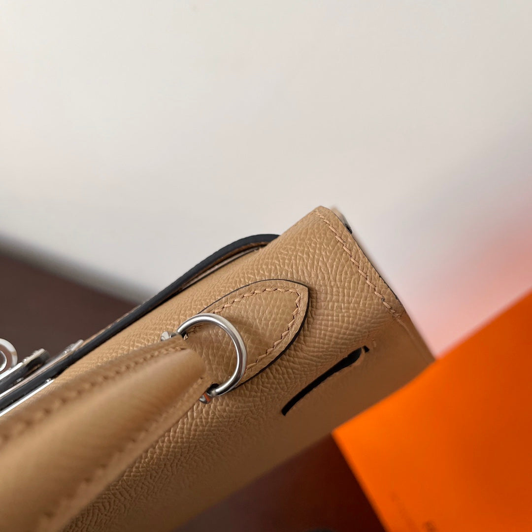 HM KELLY 25CM BEIGE EPSOM LEATHER SILVER HARDWARE