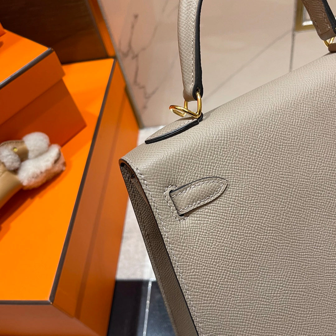 HM KELLY 25CM GREY EPSOM LEATHER GOLD HARDWARE